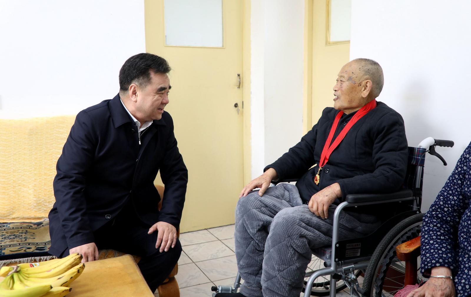 張學(xué)儒是原慶陽(yáng)地區(qū)公安處偵察員,1961年3月加入中國(guó)共產(chǎn)黨,夫妻二人均年事已高,因病生活困難。黃澤元與老人促膝交流,詢問(wèn)身體健康、生活起居等情況,詳細(xì)了解生活中的困難和問(wèn)題,囑咐老人要保重身體、頤養(yǎng)天年,要求相關(guān)部門要多關(guān)心老人生活,及時(shí)幫助解決困難,讓老人安度晚年。