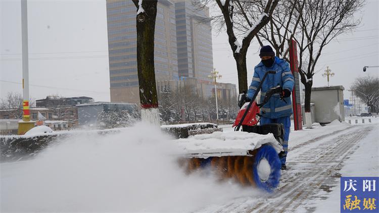 西峰城區(qū)換位工人機(jī)械化清掃積雪。