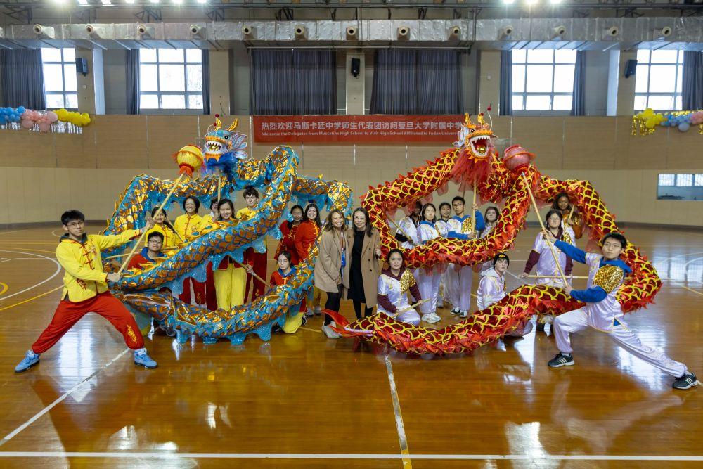 1月29日,馬斯卡廷學生在上海參加舞龍體驗活動。