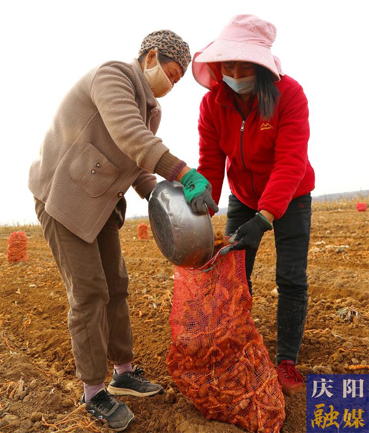 正寧縣宮河鎮(zhèn)南莊村村民曹會(huì)剛組織村民收獲生地。慶陽(yáng)融媒記者 李卿攝