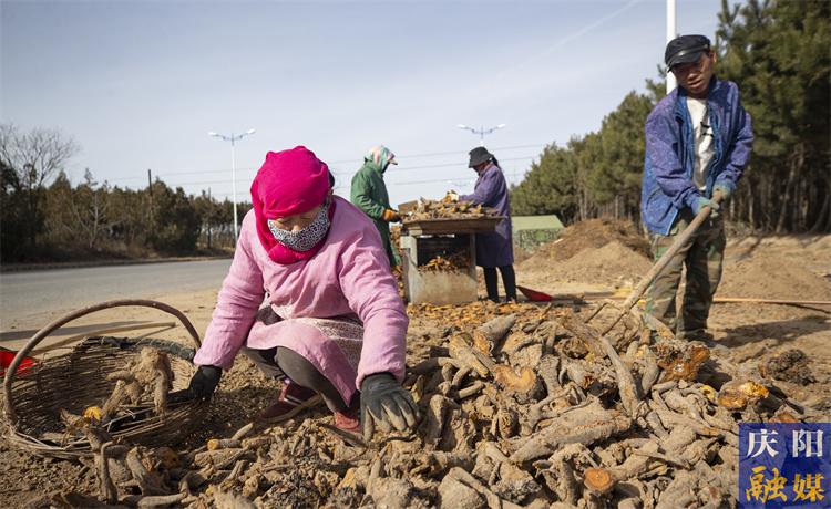 正寧縣丹丹紅種植家庭農(nóng)場(chǎng)組織村民撿拾中藥材生地。慶陽(yáng)融媒記者 路世玲攝