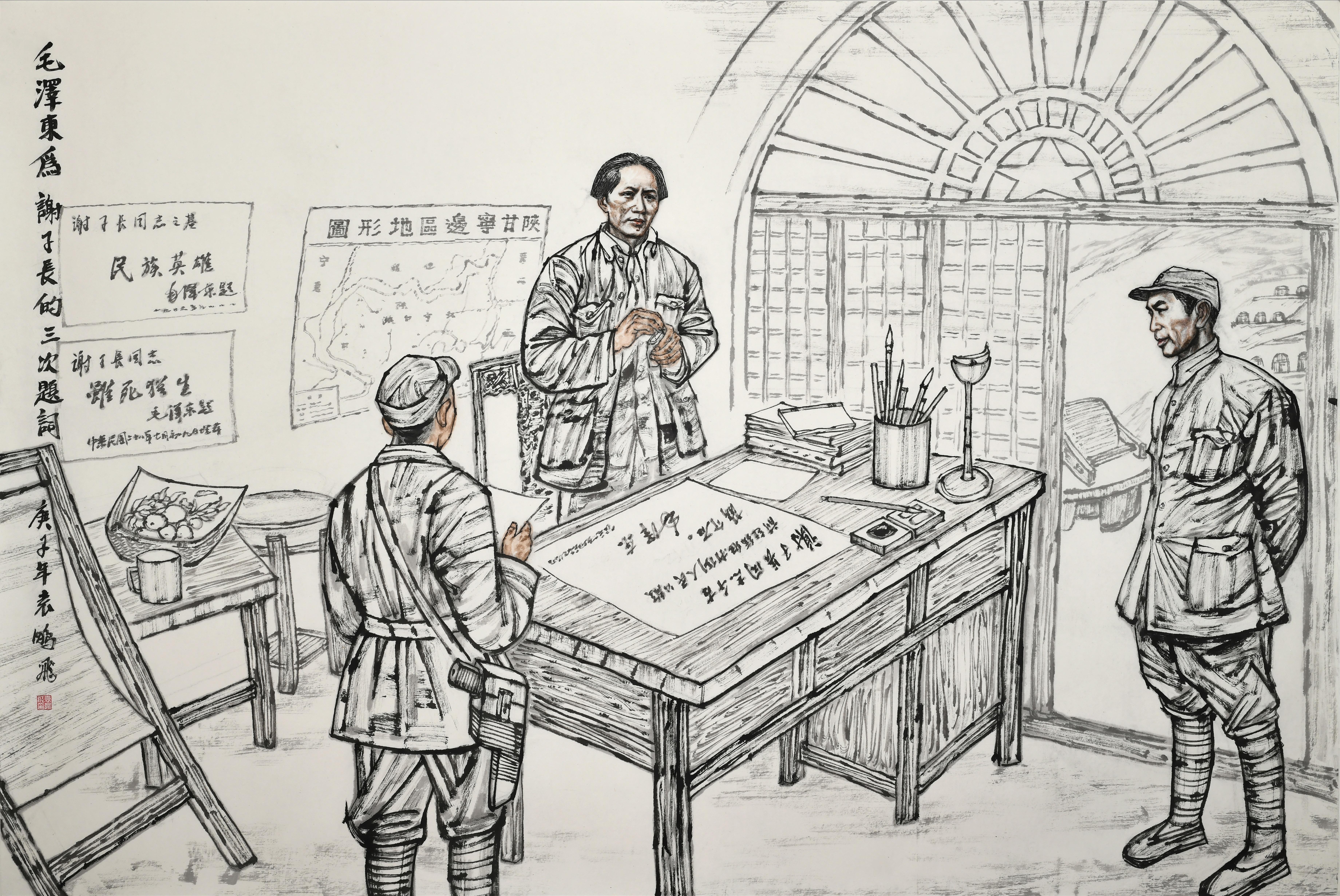 毛澤東為謝子長(zhǎng)的三次題詞 袁鵬飛 繪