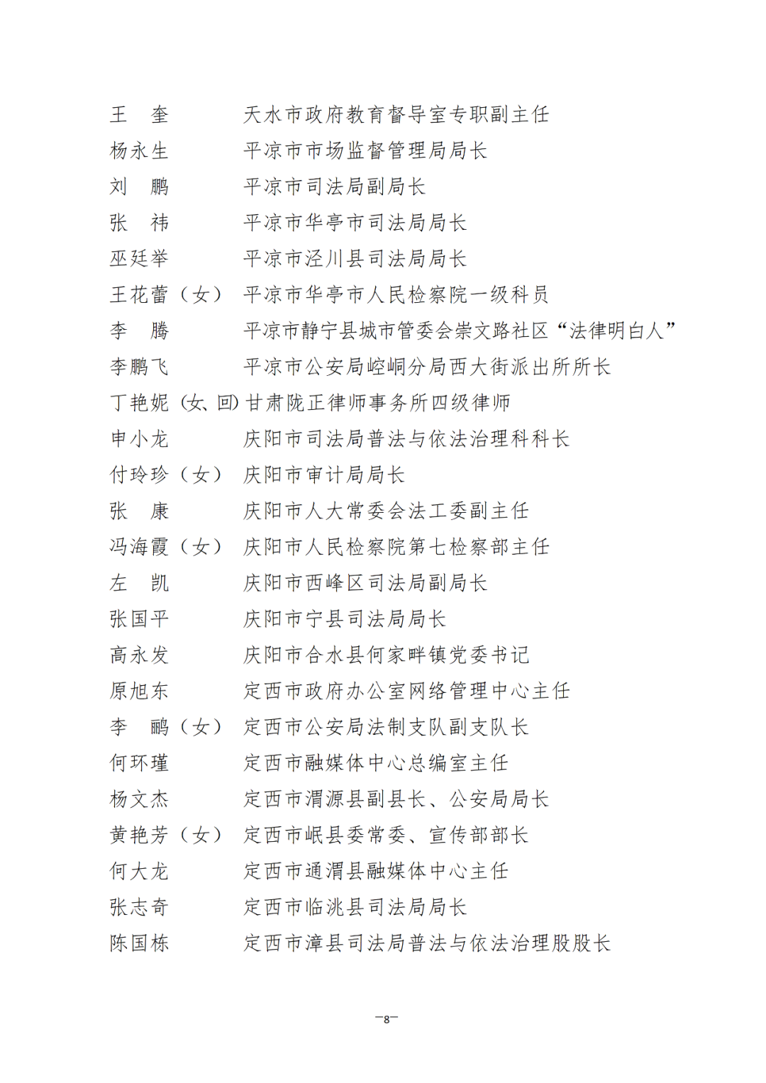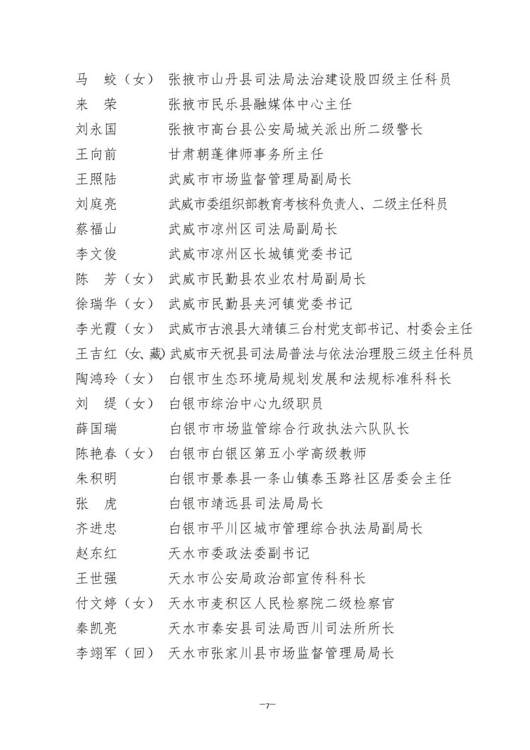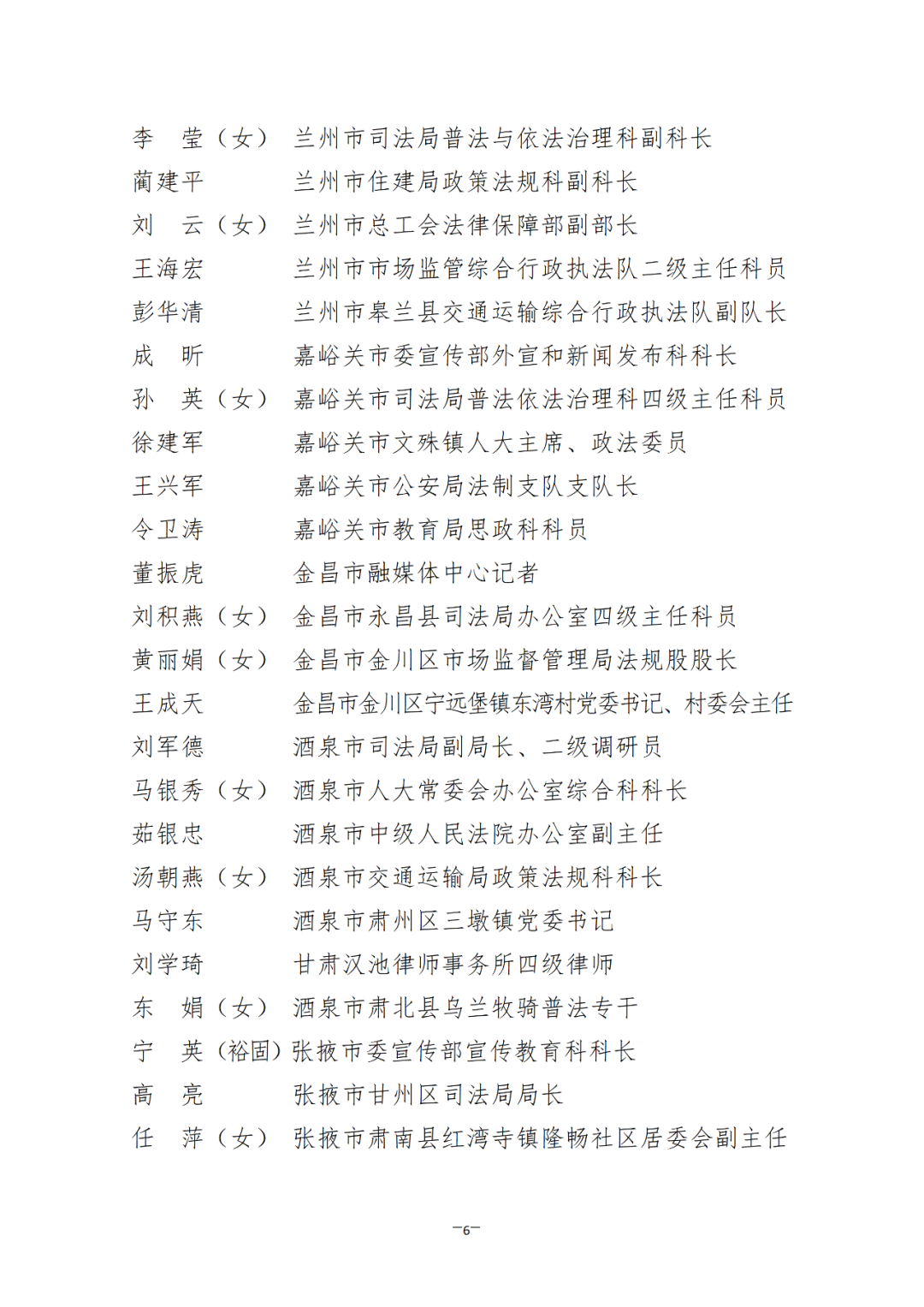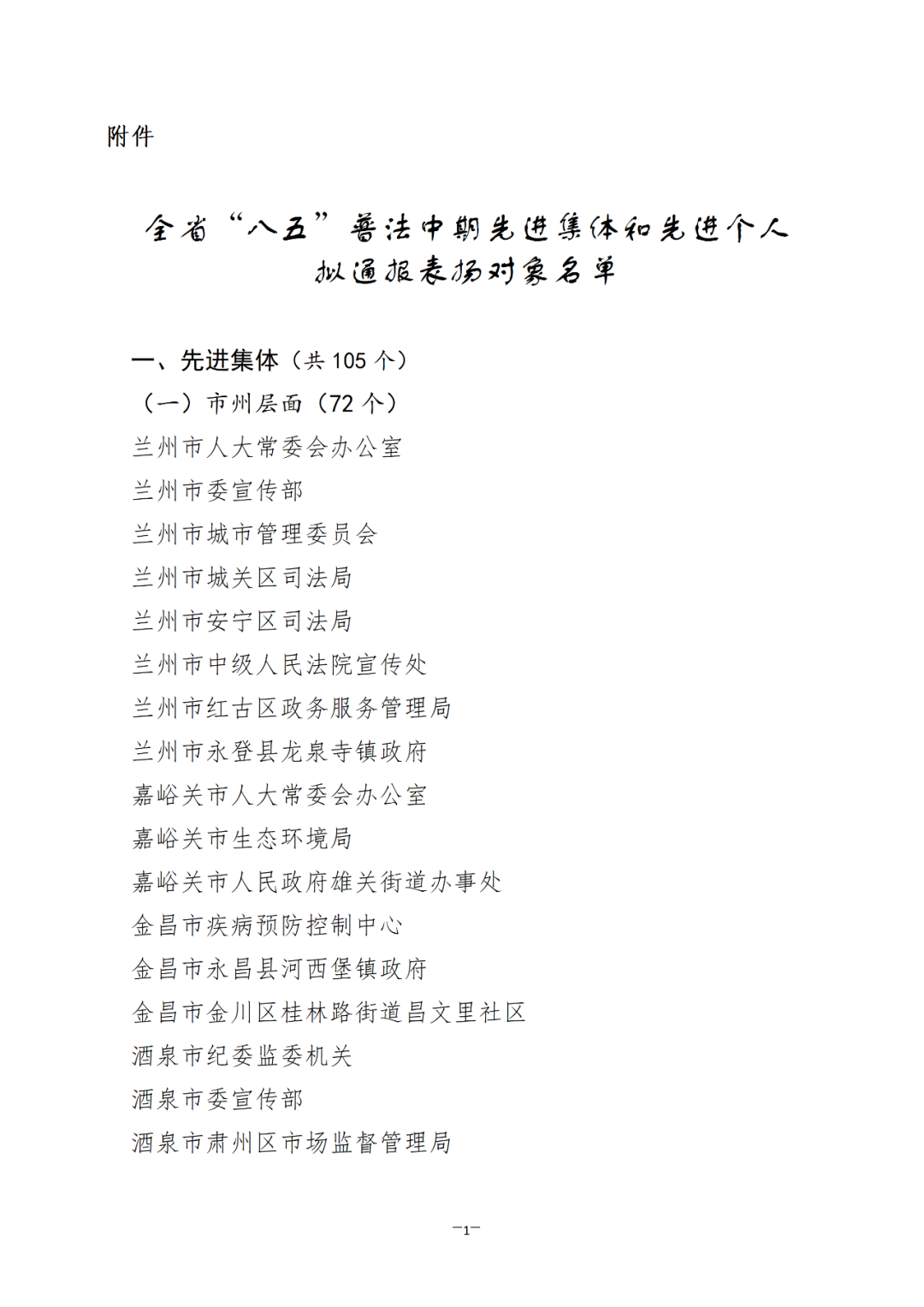 根據(jù)省司法廳、省委宣傳部《關(guān)于做好全省“八五”普法中期先進(jìn)集體和先進(jìn)個(gè)人評選推薦工作的通知》(甘司發(fā)〔2023〕106號)要求,綜合各地各部門單位自下而上逐級審核推薦,經(jīng)省委依法治省守法普法協(xié)調(diào)小組審核,擬推薦蘭州市人大常委會辦公室等105個(gè)單位和劉冬青等146名同志為全省“八五”普法中期先進(jìn)集體和先進(jìn)個(gè)人通報(bào)表揚(yáng)對象。為充分發(fā)揚(yáng)民主、廣泛聽取意見、接受社會監(jiān)督,現(xiàn)就擬通報(bào)表揚(yáng)對象進(jìn)行公示。