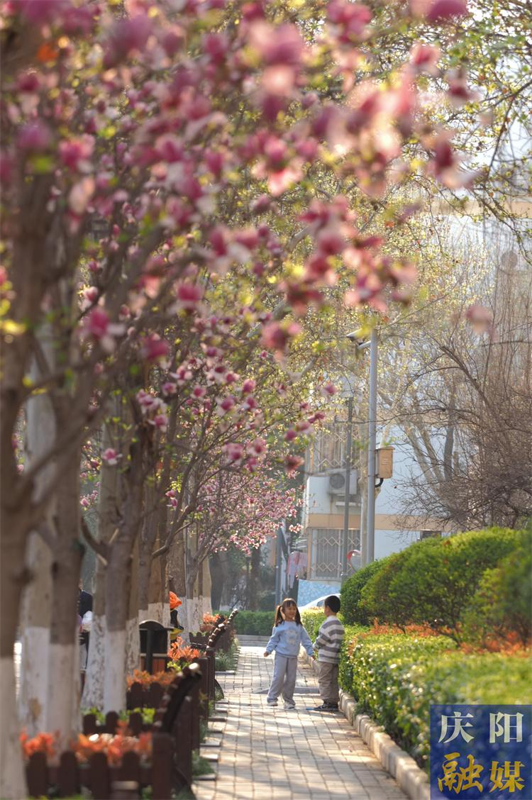 在西峰城區(qū)的公園里,山桃花悄然綻放,粉嘟嘟的花瓣白里透紅,吸引了不少市民觀賞、拍照;道路兩邊,玉蘭滿樹,花朵似玉匙一般,隨風搖曳。慶陽市城南綠地運動公園里,大人孩子們拉起風箏線,追風奔跑。