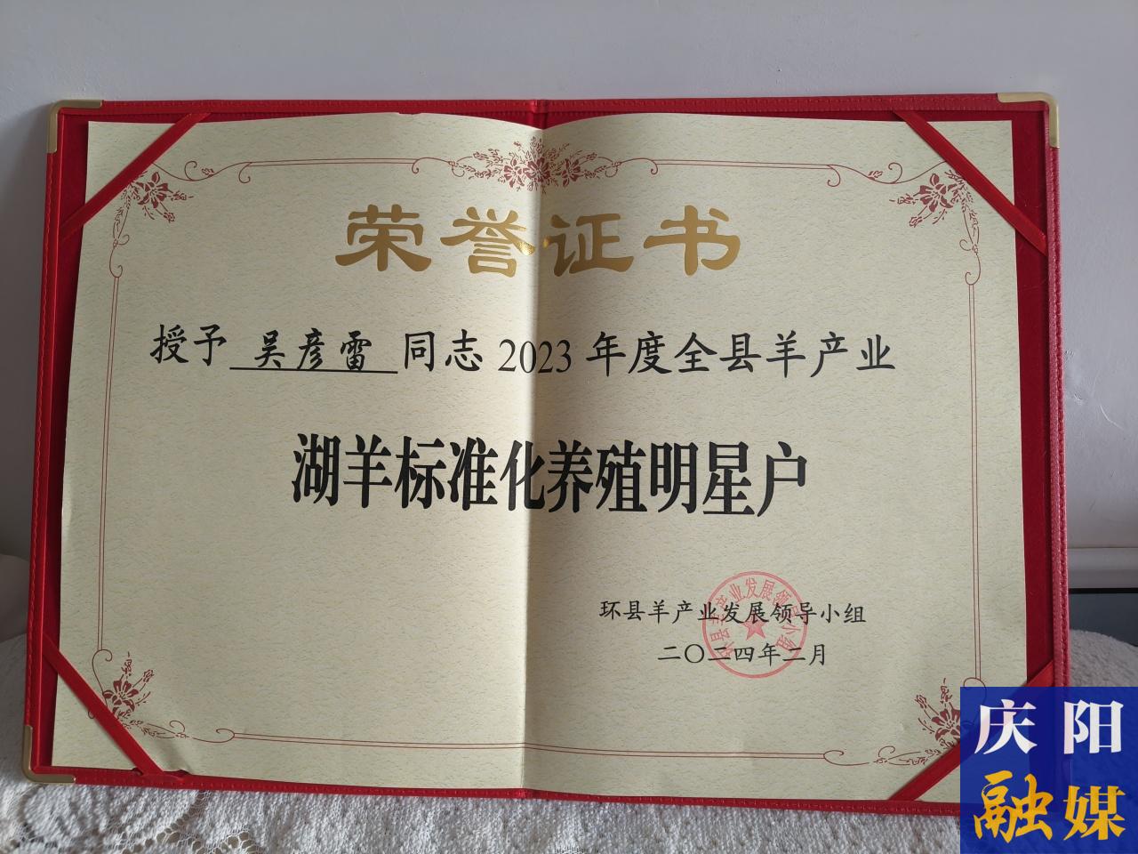 ▲吳彥雷被評(píng)選為全縣羊產(chǎn)業(yè)明星示范養(yǎng)殖戶(hù)。慶陽(yáng)融媒記者 張靜 攝。