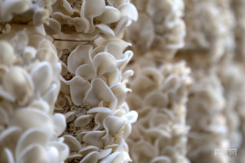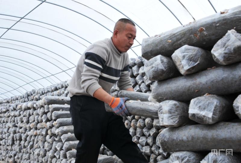 工人正在擺放菌袋(央廣網(wǎng)記者 李紅軍 攝)