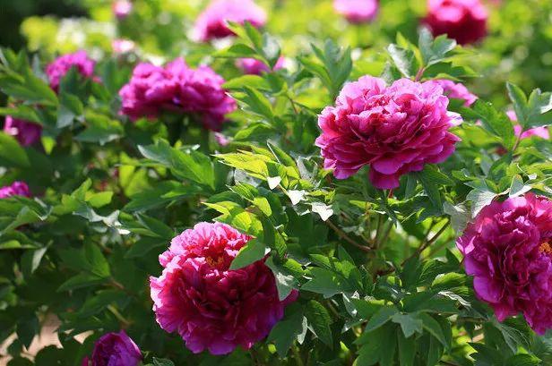 每逢春末夏初,八萬多株高低起伏的各色牡丹競(jìng)相開放。在濃密枝葉的陪襯和簇?fù)硐拢系?、白的、黃的、粉的、紅的等各色牡丹花,猶如手持上帝恩賜的一張張“門票”似的,一株接一株,一朵接一朵,次第粉墨登場(chǎng)。尚未開啟的,像含苞待放的少女一樣,露出了些許鮮嫩的面容,呈現(xiàn)出了羞答答、嬌滴滴的嬌態(tài)美。激情盛開的,恰似花枝招展的大姑娘,一層一層地綻放,一瓣一瓣地展示自我,要多大方就有多大方,霸氣十足地釋放出了空前絕后的野性美。單瓣的,簡(jiǎn)潔明凈、大方敞亮,讓觀賞者一目了然。重瓣的,滿滿當(dāng)當(dāng),咿咿呀呀、嚷嚷鬧鬧,如果你不側(cè)耳傾聽,不仔細(xì)瞧瞧,是很難揣摩透其中所飽含的秘密的。層層疊疊的各色花瓣,簇?fù)碇址置髅?、亮亮堂堂的無數(shù)枚鮮嫩花蕊,簡(jiǎn)直就是小巧玲瓏的天使在大花壇上載歌載舞。