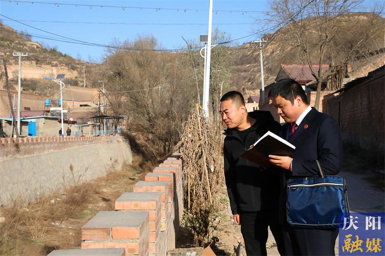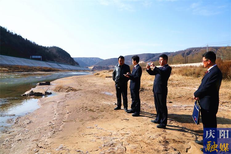 ▲慶陽市人民檢察院工作人員調(diào)查西峰區(qū)武家川河流污染情況。
