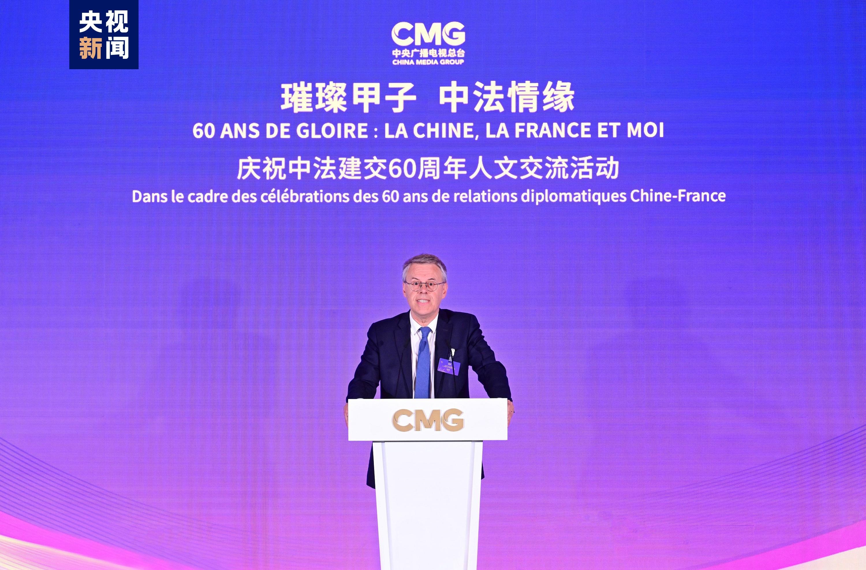 慎海雄表示,習近平主席指出,敢為人先、與時俱進是中法關系始終走在中國同西方國家關系前列的重要法寶。法國是具有獨立見解、獨特個性的西方大國,不僅因其經(jīng)濟實力,還因國家品質(zhì)和人民氣節(jié),贏得了中國人民的尊重。建交60年來,中法兩國的友誼之船在兩國元首把舵定向下行穩(wěn)致遠。人文交流貴在思想、文化的交匯、碰撞和吸引。中央廣播電視總臺精品節(jié)目《平“語”近人——習近平喜歡的典故》(國際版)在法國播出,為大家讀懂習主席的思想、中國文化、中國智慧打開一扇思想之窗,邀大家共賞璀璨輝煌的中華文明和新時代中國的獨特魅力。站在中法建交一甲子的歷史節(jié)點,總臺愿與法國朋友們并肩同行,為打造更加牢固、更富活力的中法全面戰(zhàn)略伙伴關系、推動構建人類命運共同體貢獻智慧和力量。