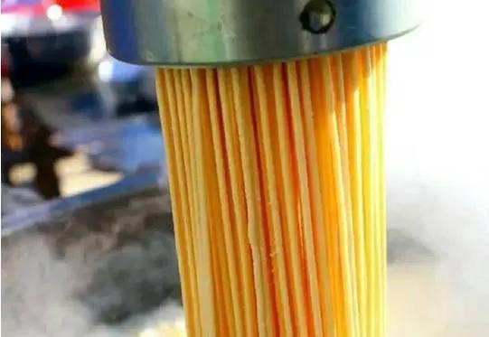 蕎面太多,面容易下成節(jié)狀。制作饸饹面時(shí),先將蕎面用開水燙成碎面團(tuán),再加入白面,用加了堿或鹽的涼水摻和,和均揉成面團(tuán),餳好,揉成軟硬適中的面棒,待水開時(shí),將面棒放進(jìn)床子里,一口氣壓下,中途不能有間隔,否則面條會(huì)打皴,中斷。