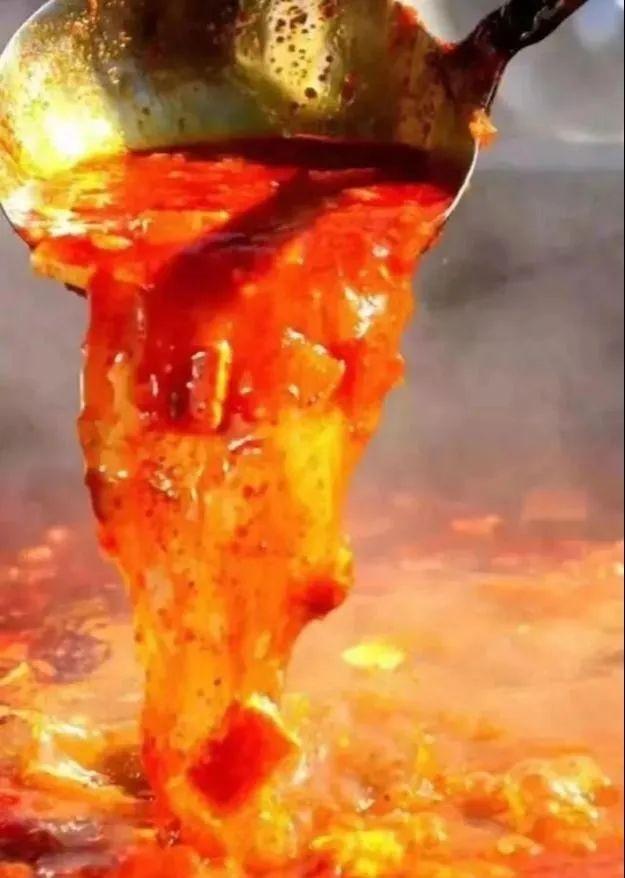 湯分為葷湯和清湯兩種,葷湯加臊子,清湯不加。清湯的做法:將白蘿卜、紅蘿卜、豆腐、土豆、番瓜、黃花菜、少許木耳切丁,其中白蘿卜丁、紅蘿卜丁用開水提前掠熟。炒制過程中加入大量辣椒面、胡椒粉、少許花椒粉、鹽,加水成湯??谖镀匾稽c(diǎn)好。