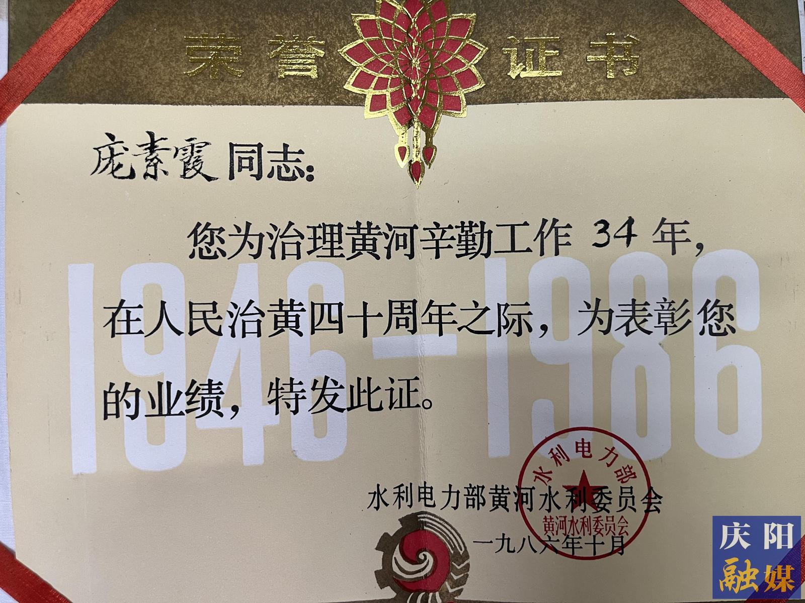 龐素霞的榮譽(yù)證書。