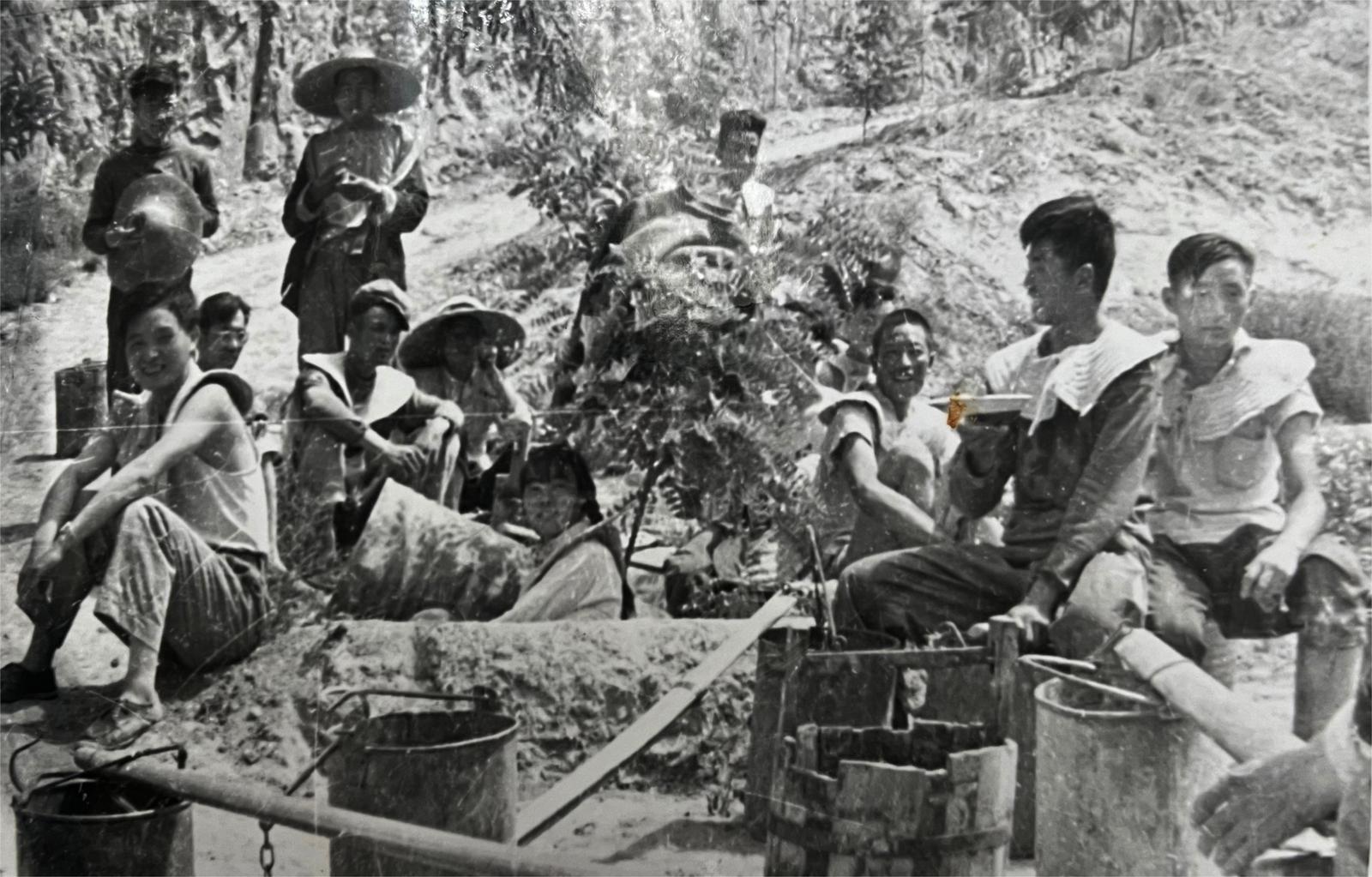 1958年黃委會(huì)職工在西峰南小河溝擔(dān)水期間休息。(資料圖)