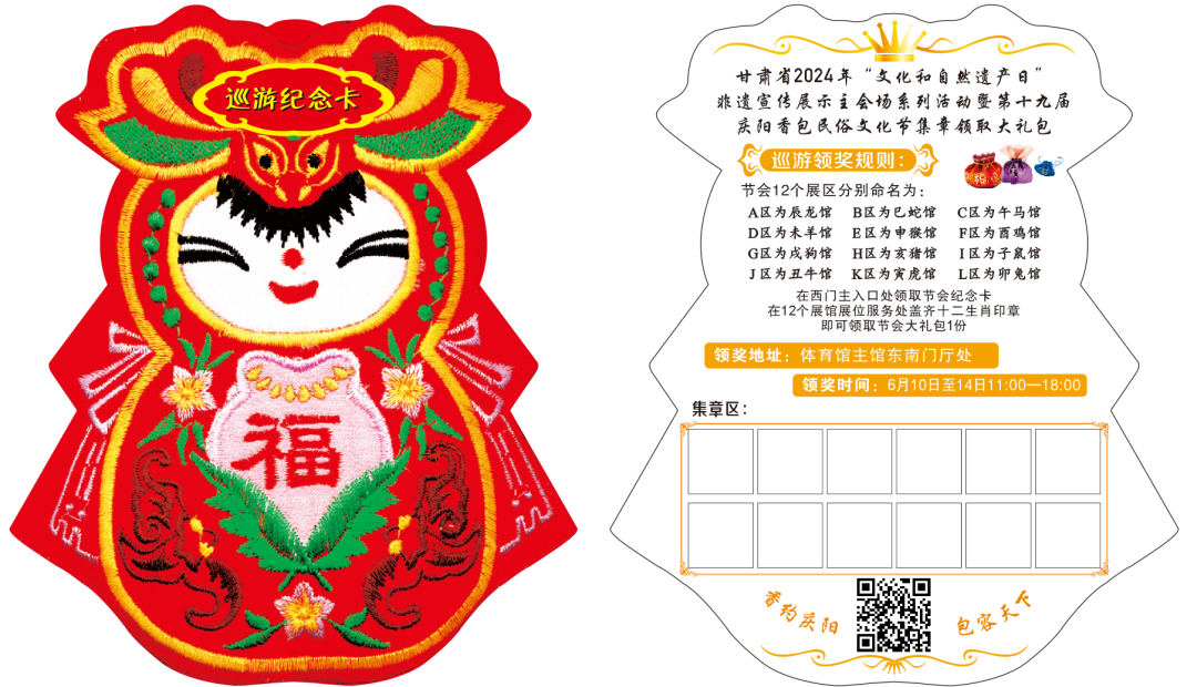 甘肅省2024年“文化和自然遺產(chǎn)日”非遺宣傳展示主會場系列活動暨第十九屆慶陽香包民俗文化節(jié)將于2024年6月10日至14日在慶陽市體育館召開,屆時不僅有來自世界各地精美絕倫的藝術(shù)品以及全國優(yōu)秀民俗文化產(chǎn)品扮靚整個節(jié)會,而且節(jié)會期間還會有妙趣橫生的巡游領(lǐng)獎小游戲互動,為觀眾送去涼涼夏日一抹清涼,逛節(jié)會,還可以領(lǐng)禮品哦!
