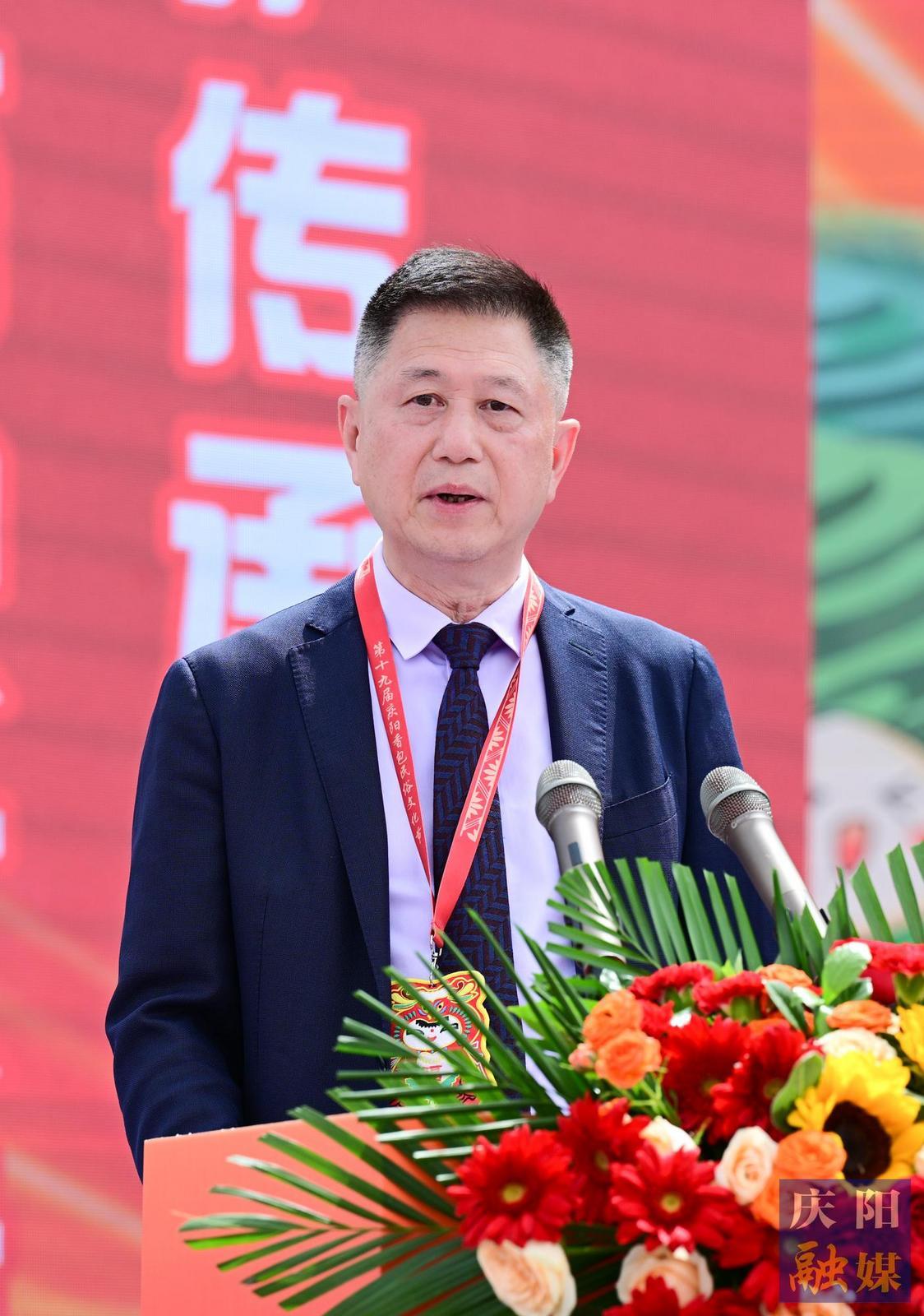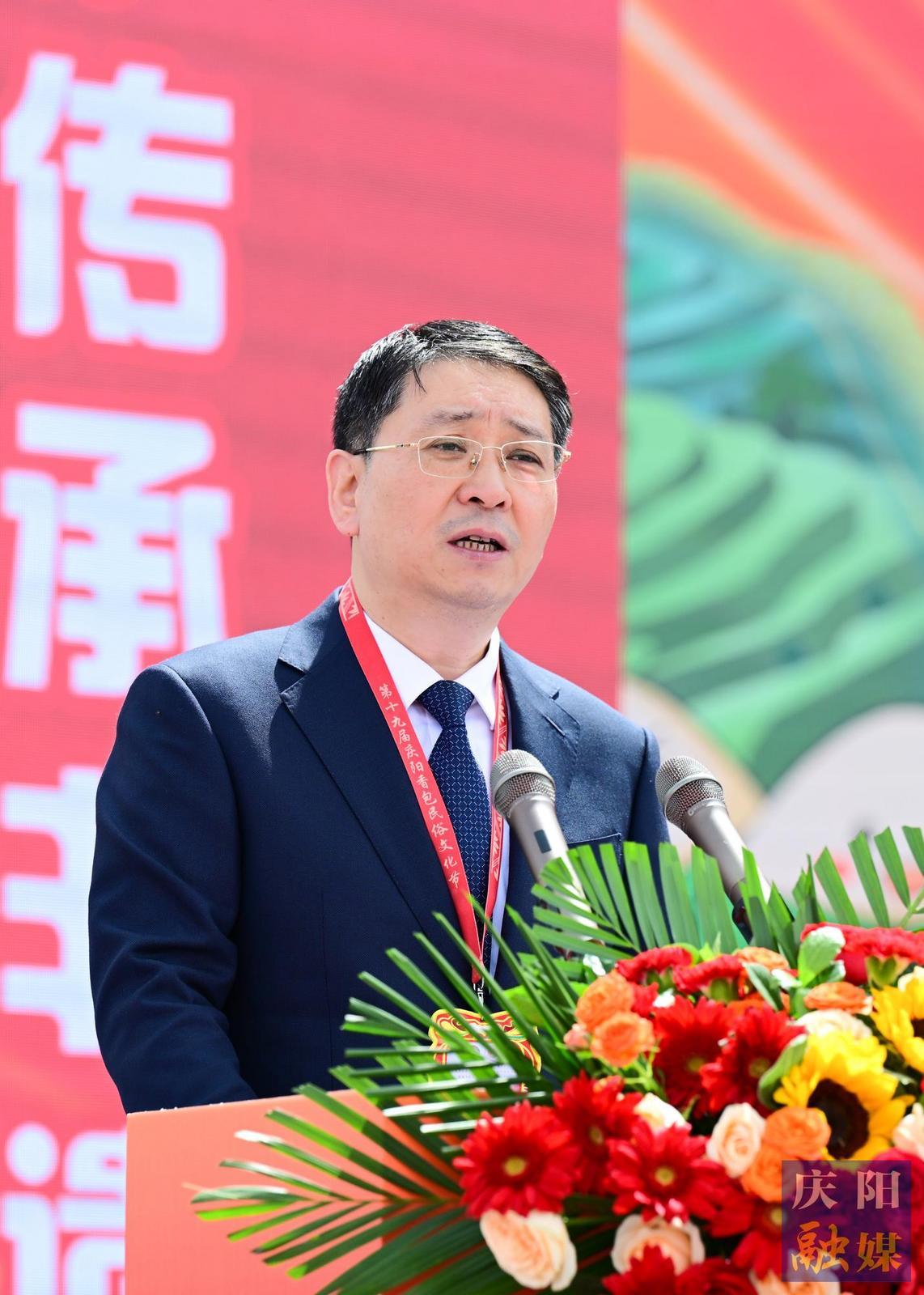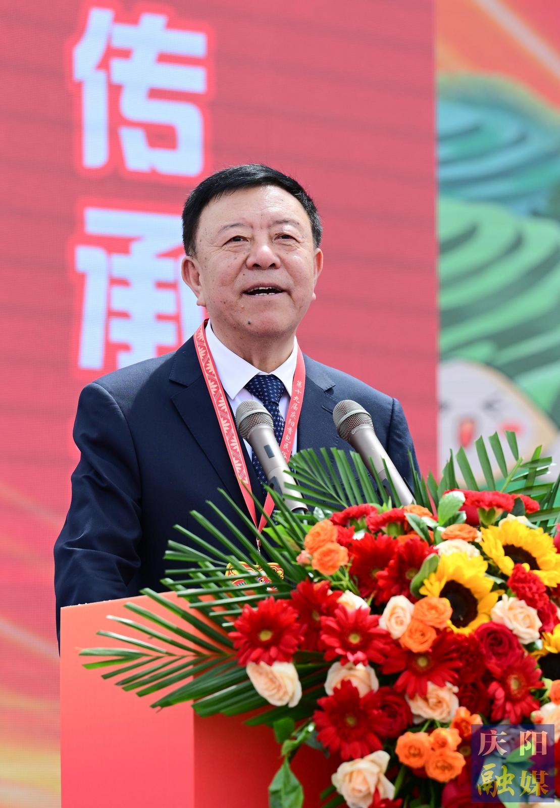 尚勛武對(duì)節(jié)會(huì)順利開幕表示祝賀,向各位來賓蒞臨表示歡迎。他說,本次節(jié)會(huì)以展演、展示、展銷相結(jié)合的方式,讓群眾近距離體味甘肅文化遺產(chǎn)的魅力,必將進(jìn)一步激發(fā)廣大群眾熱愛優(yōu)秀傳統(tǒng)文化的熱情,增強(qiáng)保護(hù)文化遺產(chǎn)的自覺性,營(yíng)造全社會(huì)關(guān)注、挖掘、保護(hù)和傳承文化遺產(chǎn)的濃厚氛圍。慶陽(yáng)市成功舉辦十九屆香包民俗文化節(jié),是深入貫徹落實(shí)習(xí)近平文化思想的具體實(shí)踐,是落實(shí)中央和甘肅省有關(guān)工作要求的具體舉措,充分展現(xiàn)了地方民俗文化風(fēng)采,弘揚(yáng)了民族優(yōu)秀文化傳統(tǒng),同時(shí)為廣大群眾提供了豐富多彩的文化大餐和精神食糧,對(duì)推動(dòng)慶陽(yáng)經(jīng)濟(jì)社會(huì)高質(zhì)量發(fā)展產(chǎn)生積極而深遠(yuǎn)的意義。希望慶陽(yáng)市委、市政府深入貫徹落實(shí)習(xí)近平新時(shí)代中國(guó)特色社會(huì)主義思想,不斷深化改革、擴(kuò)大開放,凝聚全市干群智慧和力量,走好“‘雙輪’驅(qū)動(dòng)、‘三化’并進(jìn)、‘四建’支撐,老區(qū)高質(zhì)量發(fā)展”的路子,堅(jiān)持文化為魂、旅游為體、康養(yǎng)為用、融合發(fā)展,持續(xù)推動(dòng)文旅產(chǎn)業(yè)一體發(fā)展,全力打造“高天厚土、紅色圣地、文化慶陽(yáng)”品牌形象,促進(jìn)經(jīng)濟(jì)社會(huì)高質(zhì)量發(fā)展。