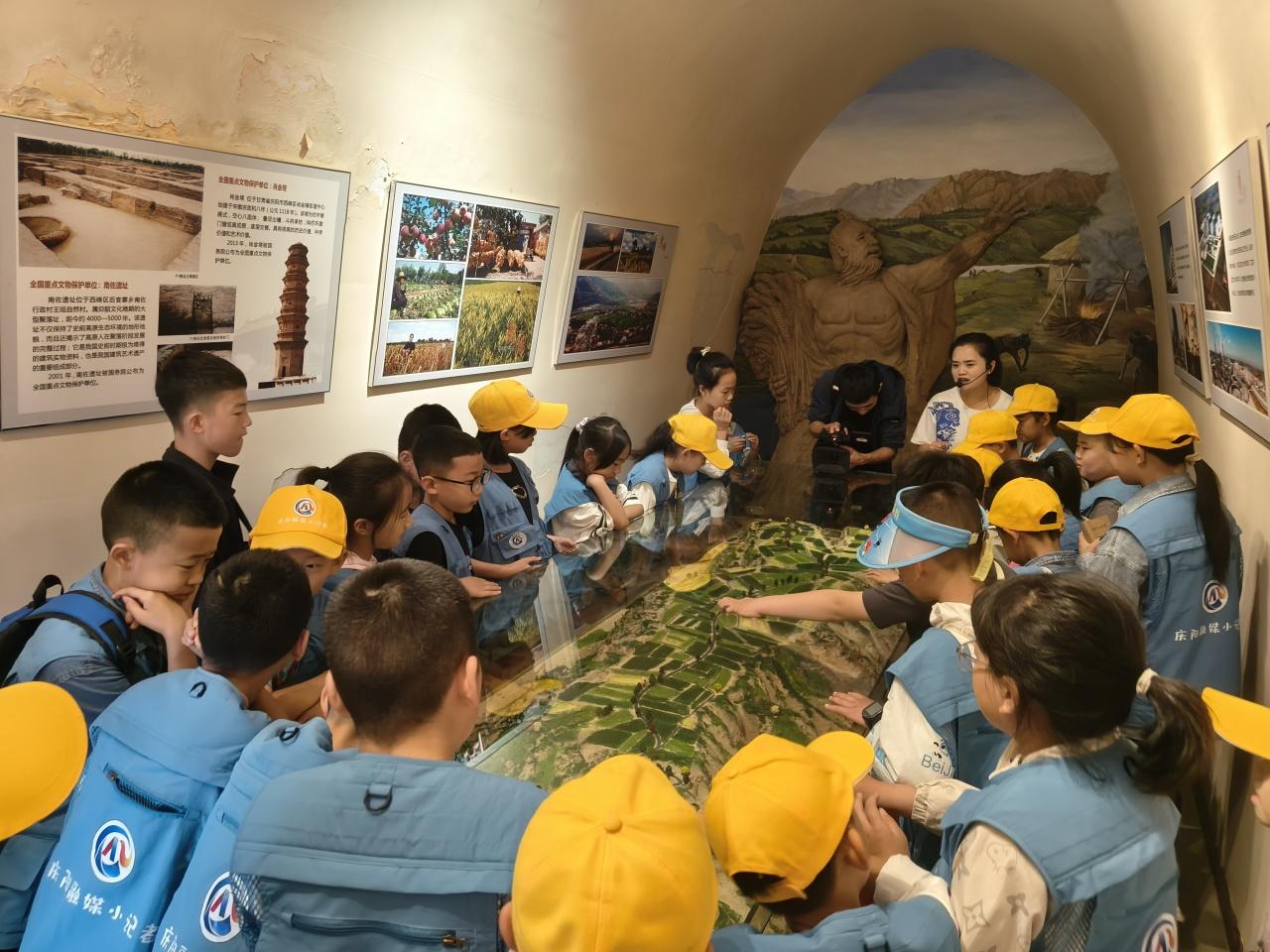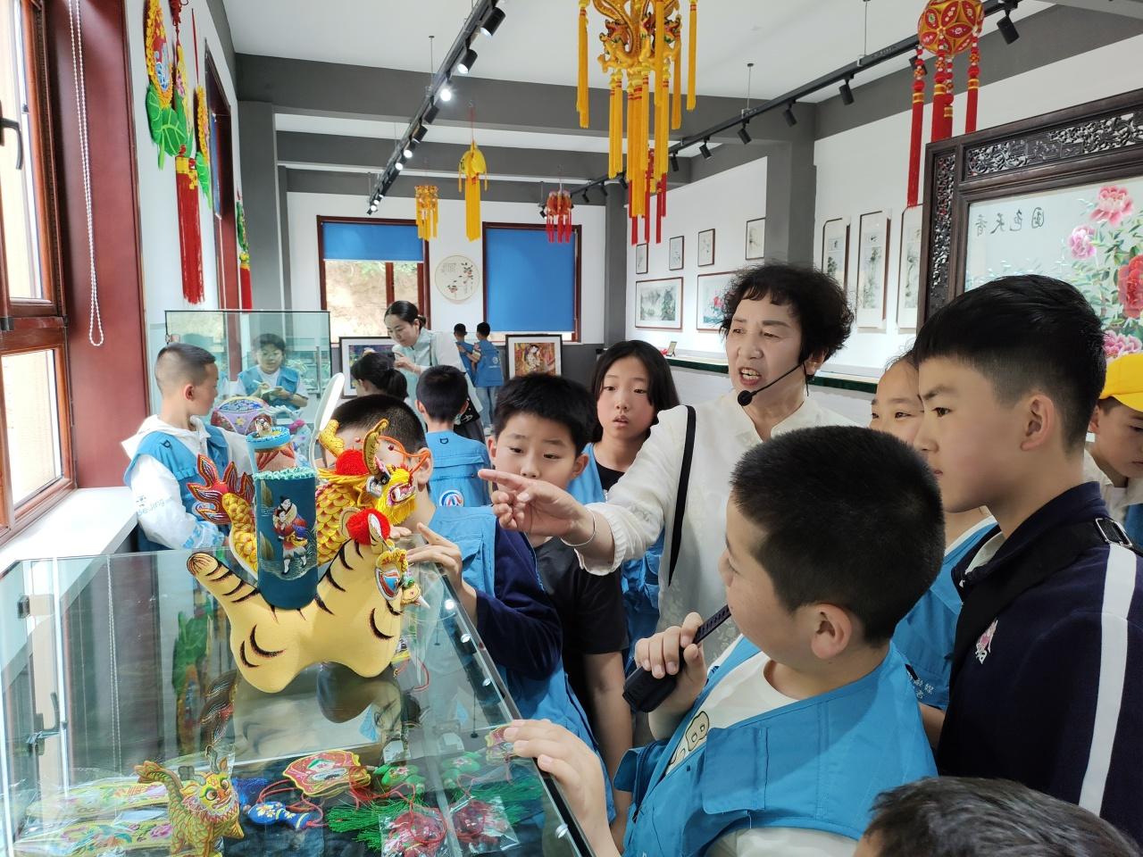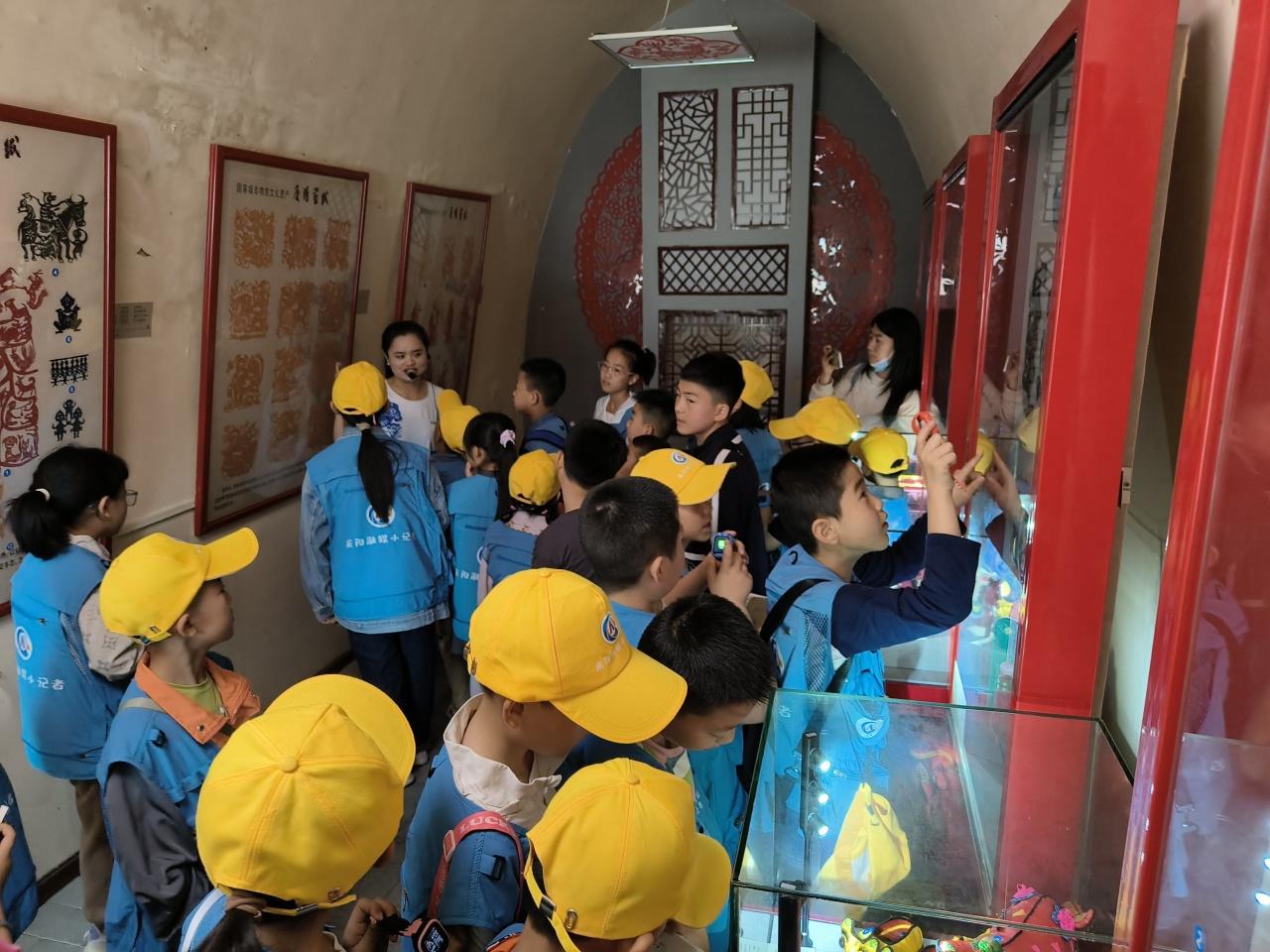 “這個(gè)展廳里面的沙盤呈現(xiàn)的是黃土塬的地形地貌,是世界上面積最大、土層最厚、保存最完整的黃土塬面?!薄拔抑?,我們生活在‘天下黃土第一塬’。”‘五毒’指的是什么?”“‘五毒’有蝎子、蜈蚣、毒蛇、蛤蟆、壁虎?!毙∮浾郀幭嗷卮鹬v解員提出的問題,認(rèn)真傾聽講解。通過參觀隴東民俗博物館、民俗禮儀、民藝精華、民間祭祀、隴上佛光、窯洞春秋五個(gè)部分的陳設(shè)展廳,小記者們對隴東地區(qū)極為豐富的文化資源和民俗文化,有了進(jìn)一步的認(rèn)識和理解,并了解了端午的起源、習(xí)俗,以及慶陽的民俗藝術(shù)“五絕”,有香包、剪紙、刺繡、皮影、隴東民歌。