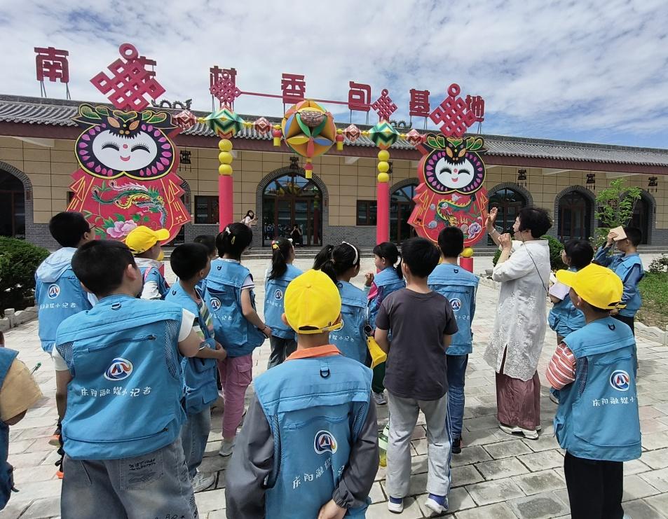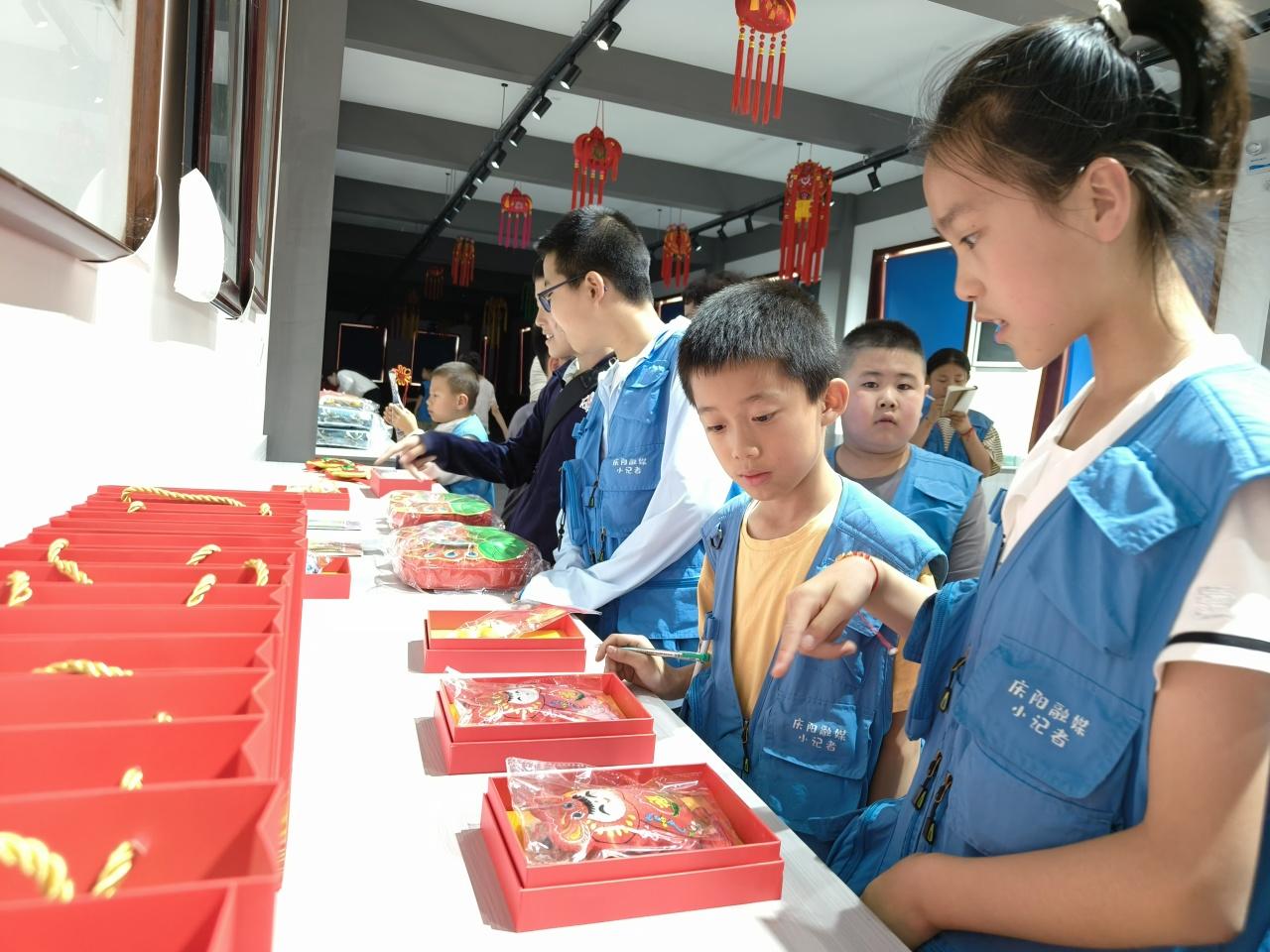 早晨9點(diǎn),小記者們陸續(xù)來到集合地點(diǎn)——慶陽市融媒體中心,背上簡單的行囊,頭戴小黃帽、穿藍(lán)馬甲的小記者們和父母道別后就踏上了民俗體驗(yàn)之旅。