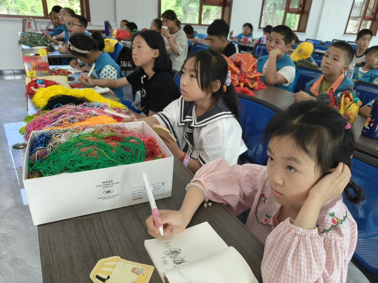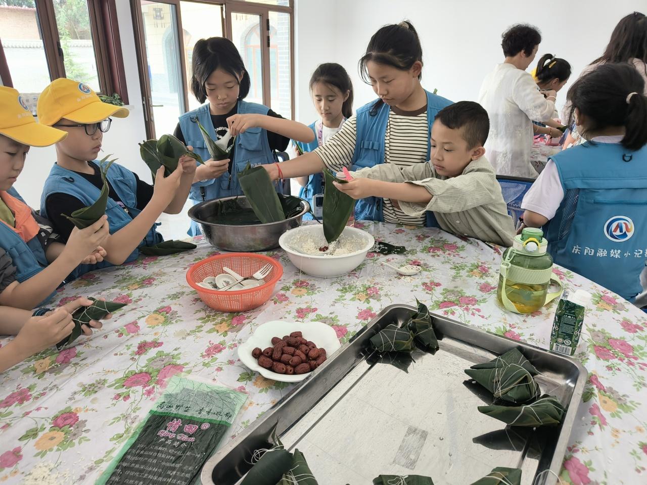 感受端午傳統(tǒng)民俗,小記者們首先體驗(yàn)包粽子。