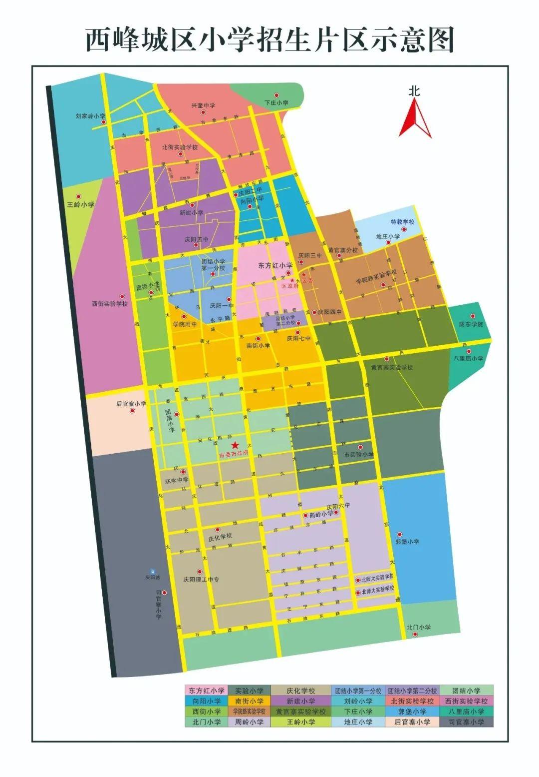 西街小學(xué):慶化大道以東,西大街以南,長(zhǎng)慶大道以西,蘭州路以北;慶化大道以東,解放西路以南,老西環(huán)路以西,西大街以北。