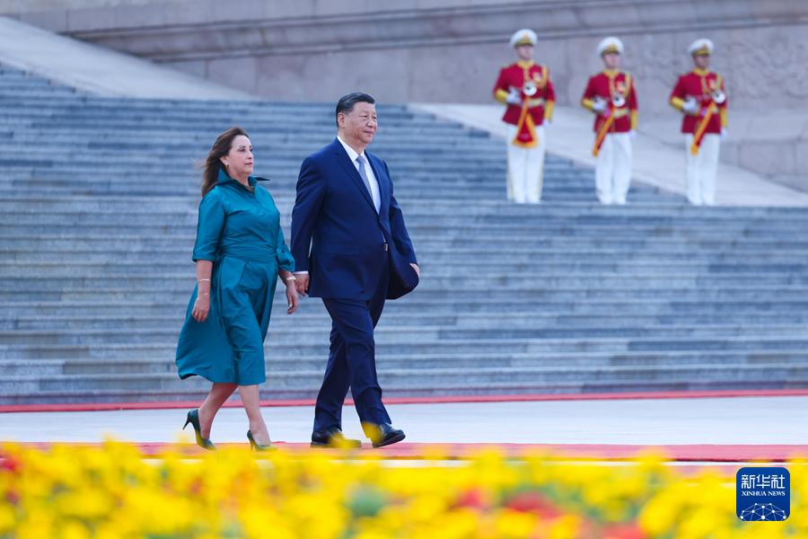 6月28日下午,國(guó)家主席習(xí)近平在北京人民大會(huì)堂同來(lái)華進(jìn)行國(guó)事訪問(wèn)的秘魯總統(tǒng)博魯阿爾特舉行會(huì)談。這是會(huì)談前,習(xí)近平在人民大會(huì)堂東門外廣場(chǎng)為博魯阿爾特舉行歡迎儀式。新華社記者 丁林 攝