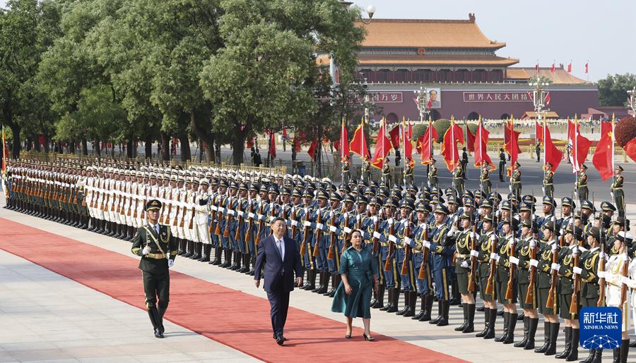 會(huì)談前,習(xí)近平在人民大會(huì)堂東門外廣場(chǎng)為博魯阿爾特舉行歡迎儀式。