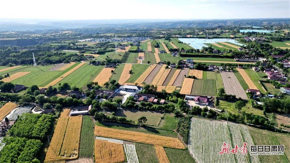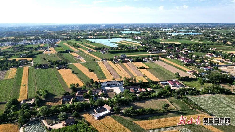 盛夏時(shí)節(jié)的慶陽(yáng)市西峰區(qū)后官寨鎮(zhèn)顯勝鄉(xiāng),金色的麥田與綠樹(shù)、村莊互相映襯,構(gòu)成一幅美麗的鄉(xiāng)村田園畫(huà)卷。