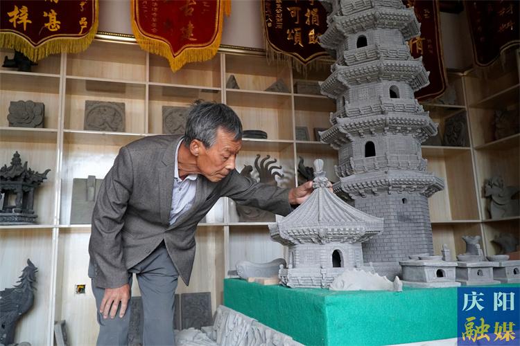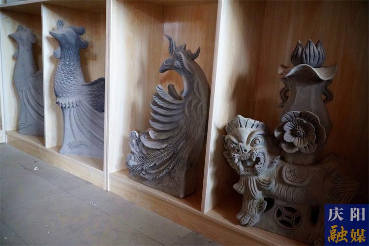徐鴻偉曾先后八次登上環(huán)縣東老爺山。環(huán)縣東老爺山上有很多古陶制品,多為典型的宋末元初風格,隨著歲月的侵蝕,有的已剝落,有的已損毀。徐鴻偉看在眼里、急在心里,他將環(huán)縣東老爺山的磚雕拍成照片,回到作坊進行雕刻、復原,并請專家來考量評估。
