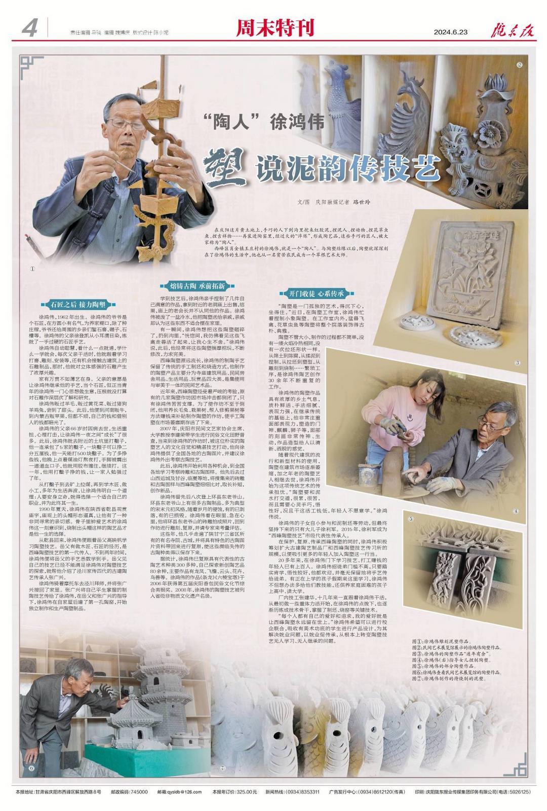 在保護、復原、傳承西峰陶塑的同時,徐鴻偉積極籌劃擴大古建陶藝制品廠和西峰陶塑技藝傳習所的規(guī)模,以便吸引更多的年輕人加入陶塑這一行當。