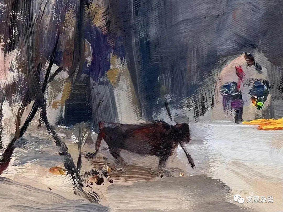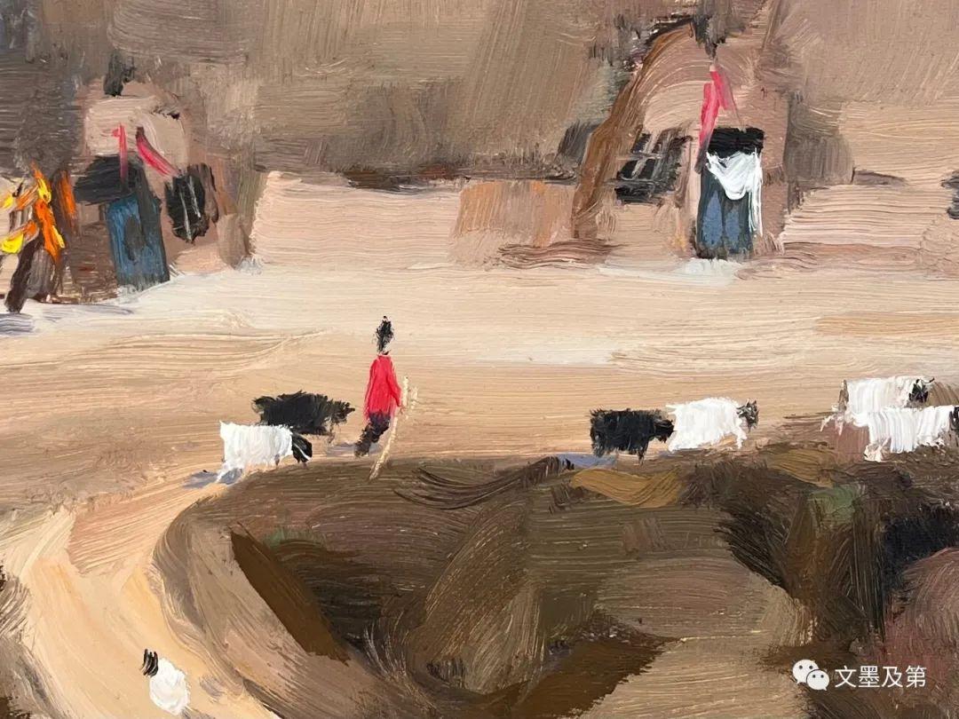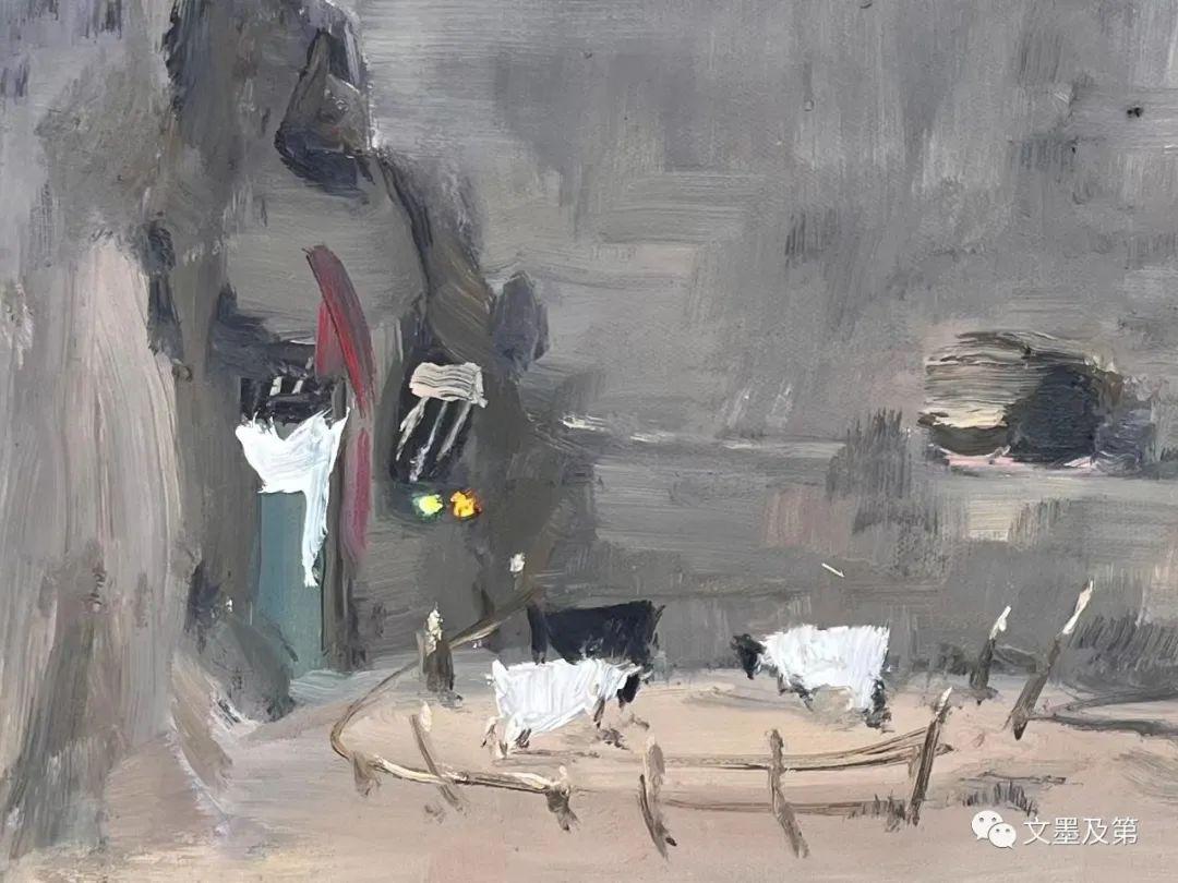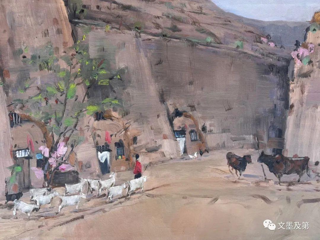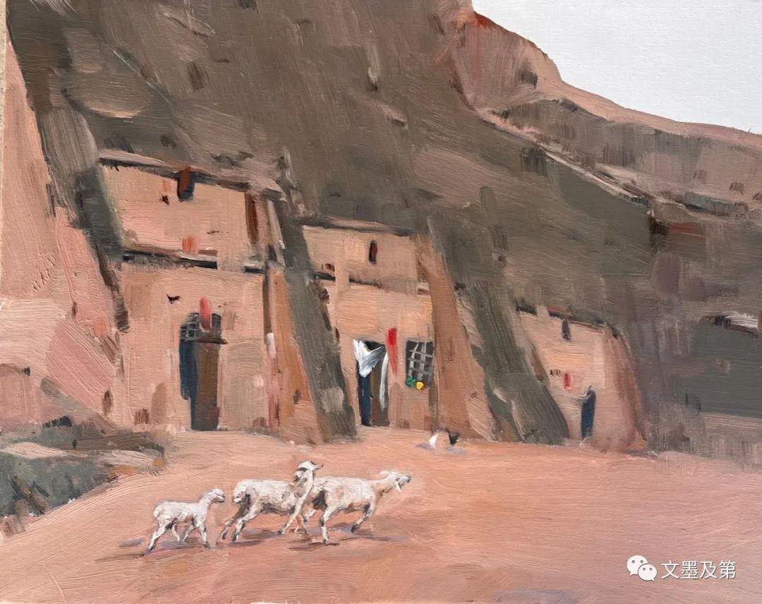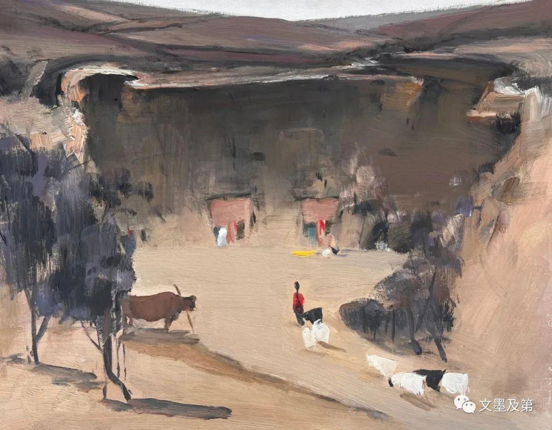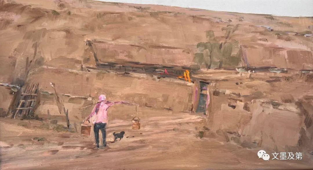就是這樣一個雙慶!他畫起畫來卻是另外一種認(rèn)真。他把隴東黃土的寬厚和蒼涼安排在自己的畫布上,自帶光芒。窯洞是他心里的希臘小廟,牛呀豬呀狗呀雞呀是他心中的精靈。他總能把隴東黃土風(fēng)情畫的精微而廣大,都染上了他自己的氣質(zhì)。