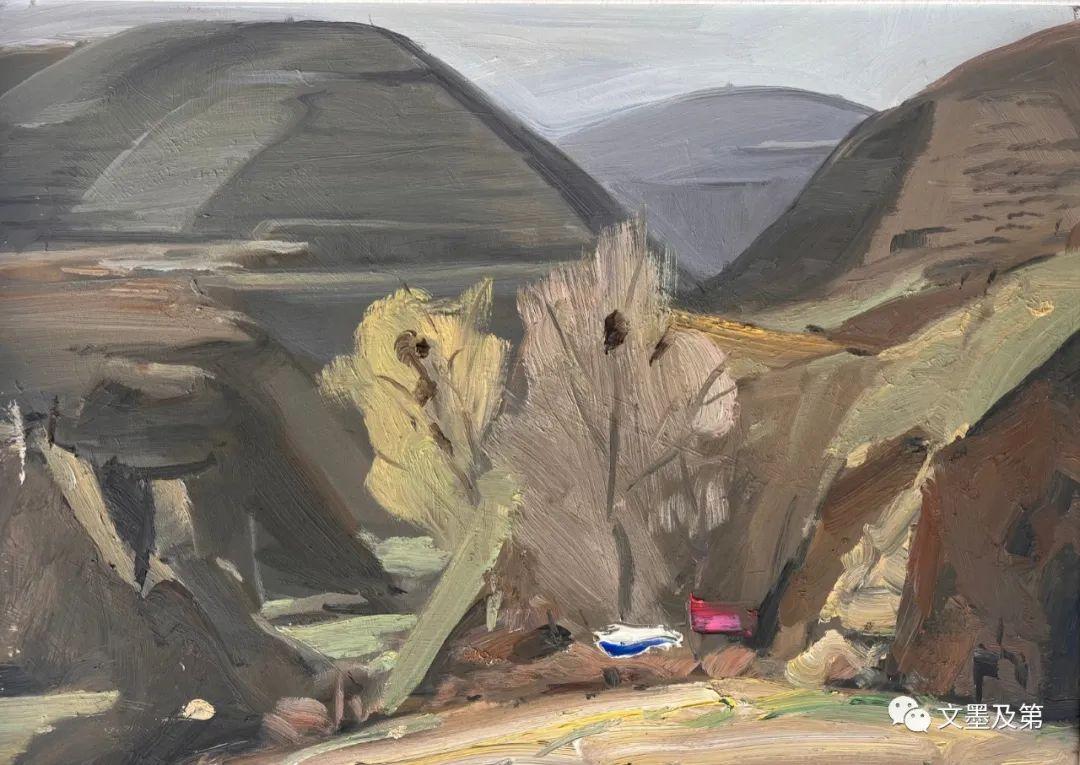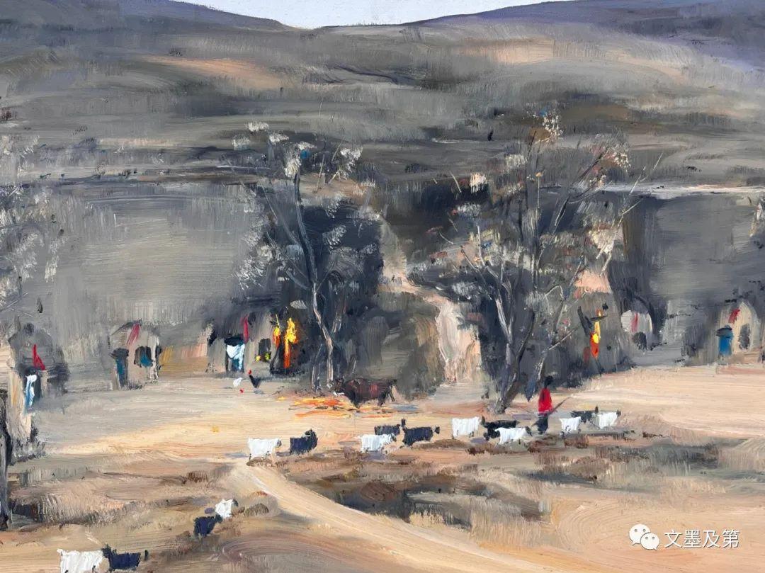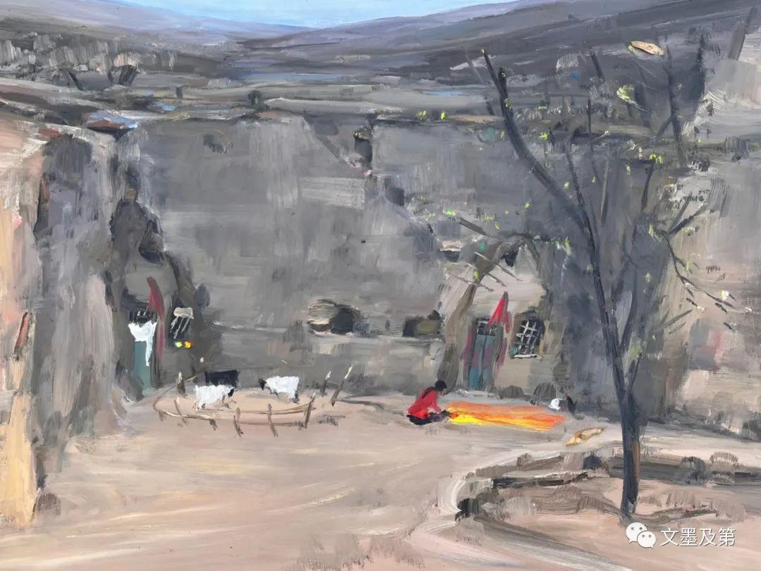 八三年,宋仁偉老師因工作調(diào)動回了北京。雙慶突然像沒了娘的孩子。早早就招工到縣公安局,干了八年民警后又調(diào)入房管所工作。直到又一天宋仁偉老師又回來了,雙慶隨生計輾轉(zhuǎn)多年不覺到了知天命的年紀(jì),但他毅然拿起了畫筆,又跟隨宋老師畫起了慶陽的山山峁峁,窯洞牛羊牲靈。