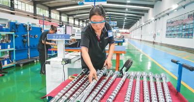 7月8日,在山東省泰山體育器材有限公司生產(chǎn)車間,工人在生產(chǎn)體操器械。新華社記者 朱崢攝
