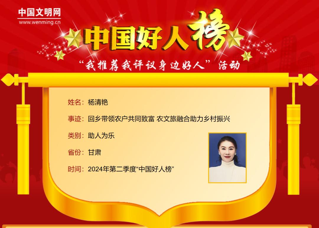 慶陽(yáng)環(huán)縣楊清艷榮登“中國(guó)好人榜”!