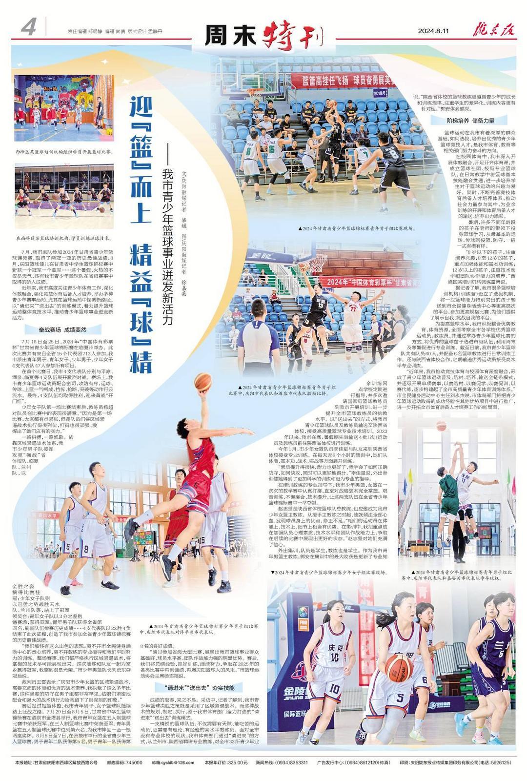 7月18日至25日,2024年“中國體育彩票杯”甘肅省青少年籃球錦標(biāo)賽在臨夏州舉辦。此次比賽共有來自全省15個代表團(tuán)712人參加,慶陽市派出青年男子、青年女子、少年男子、少年女子4支代表隊(duì)47人參加所有項(xiàng)目。
