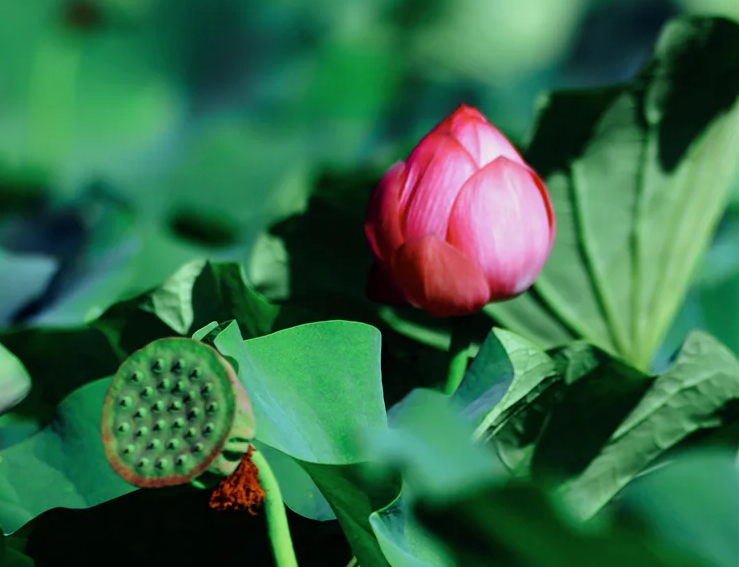 記得那天是拂曉,太陽剛剛露出大半兒,我在村民們早起忙于勞作的大嗓門中醒來,像往常一樣去蓮池邊上散步。沒想到竟看到星星點點的花苞嶄露頭角,當時激動得趴在池子旁邊看了好大一會兒。村民們雖起得比我早,但他們既要勞作,蓮花的開與不開似乎與他們沒有多大關(guān)系,也沒有我這樣的歡喜。