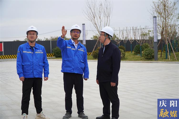 慶陽市住建局工作人員(右一)與中國能建施工方討論項(xiàng)目進(jìn)展。