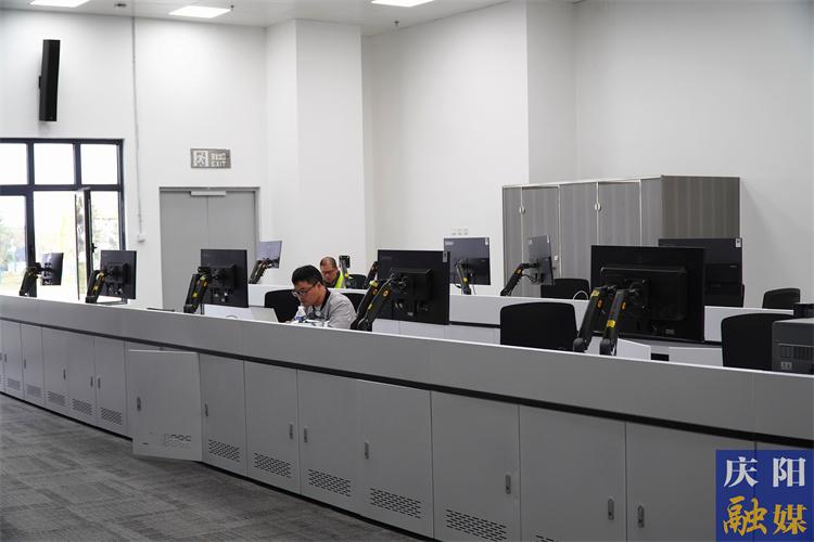 中國能建慶陽大數(shù)據(jù)中心產(chǎn)業(yè)園內(nèi)A1數(shù)據(jù)中心內(nèi)部的ECC監(jiān)控中心,工作人員進(jìn)行最后的設(shè)備調(diào)試。