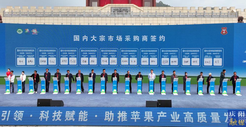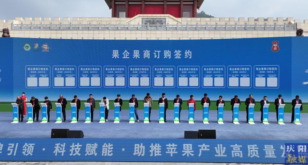 慶陽網(wǎng)訊(慶陽融媒記者 陳飛 王志龍)10月18日,2024中國蘋果年會(huì)·慶陽蘋果商貿(mào)洽談會(huì)開幕式在慶城縣舉行。其間,舉行了“慶陽蘋果”出口訂單、大宗市場(chǎng)直采訂單、果企果商訂購和全產(chǎn)業(yè)鏈招商引資項(xiàng)目簽約活動(dòng)。現(xiàn)場(chǎng)簽訂蘋果購銷協(xié)議25個(gè),訂貨量13.47萬噸,金額10.04億元。
