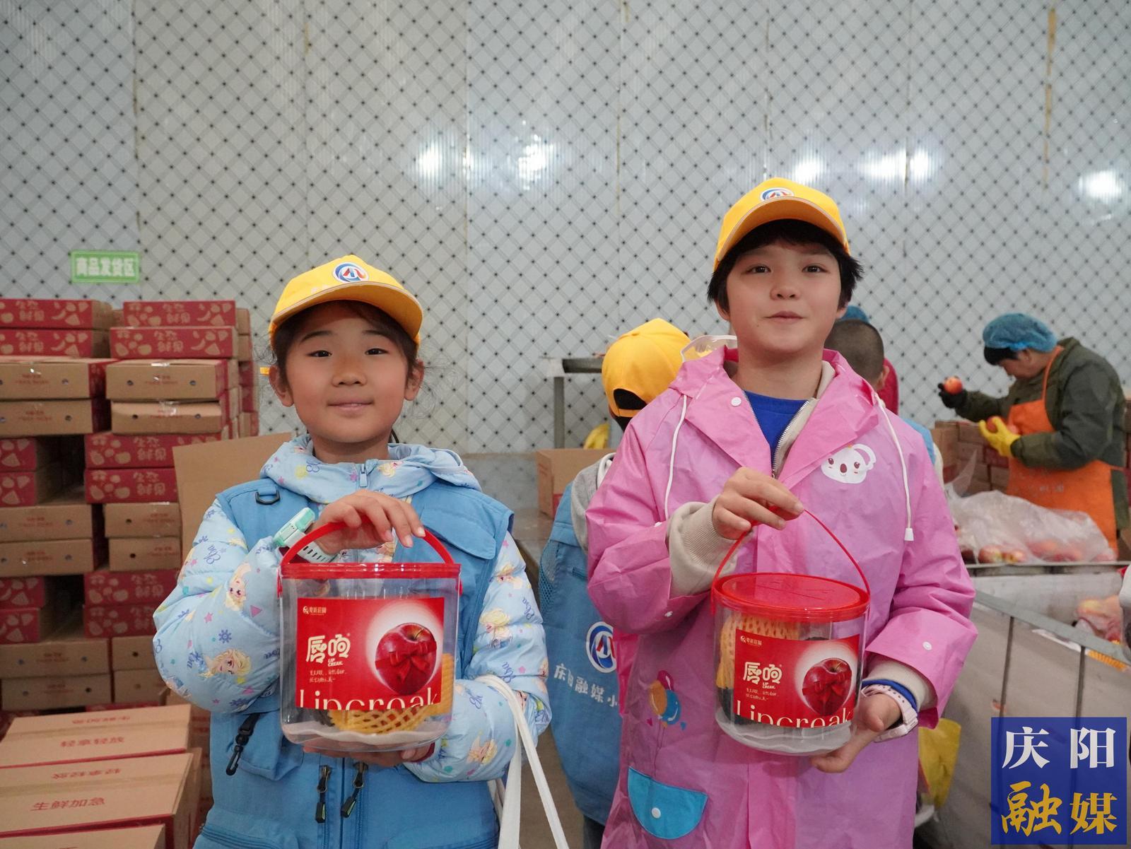 給每一顆蘋果穿上“防護衣”,并將包裝好的蘋果收入囊中,最令小記者期待的莫過于“我是小小打包員”體驗環(huán)節(jié)。在打包臺,工作人員為小記者發(fā)放了手拎抱抱桶,小記者們開始學習挑選蘋果和打包,看著一顆顆金黃透亮的‘金蘋果’被裝進自己的抱抱桶內(nèi),小記者們無不沉浸在心滿意足的喜悅中。“一套、二翻、三穿,給蘋果‘穿衣服’也是件技術(shù)活,別看一個小小的網(wǎng)套,工作人員講解示范后,我花費了好一會兒才將網(wǎng)套裹在蘋果上?!毙∮浾叨♀f。