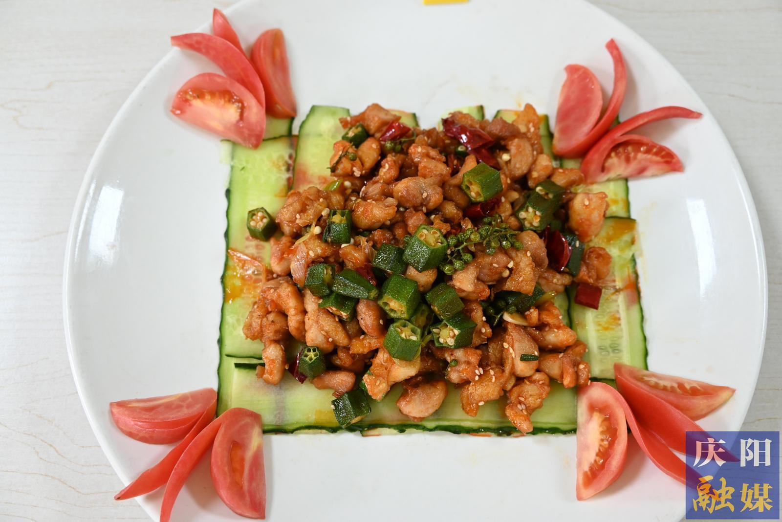 廚師烹飪“鮮椒秋葵小炒雞”。