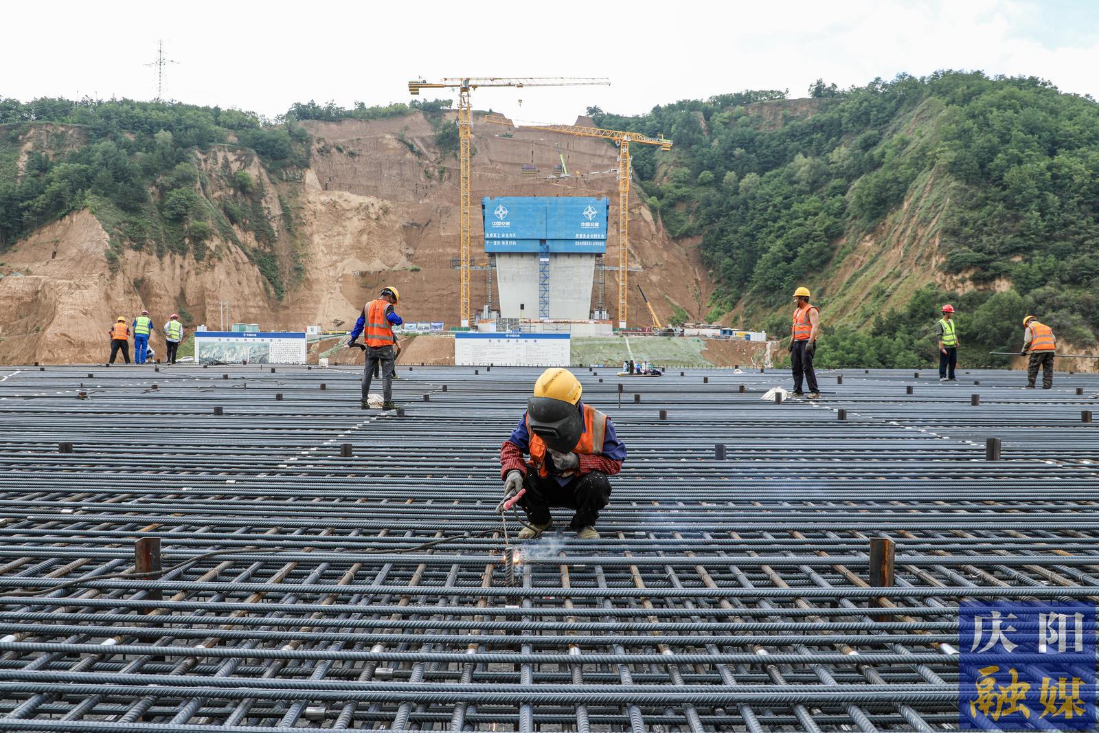 西合公路蓋家川特大橋施工現(xiàn)場,工人焊接鋼筋籠(2023年8月3日攝)。