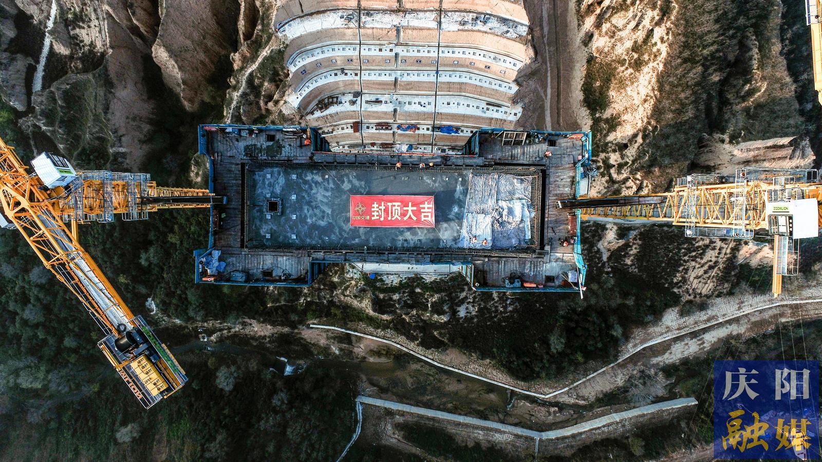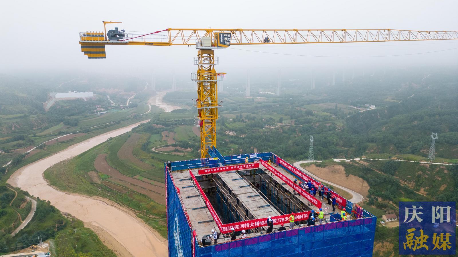 西合公路馬蓮河特大橋178米主墩順利封頂(2023年9月10日攝)。