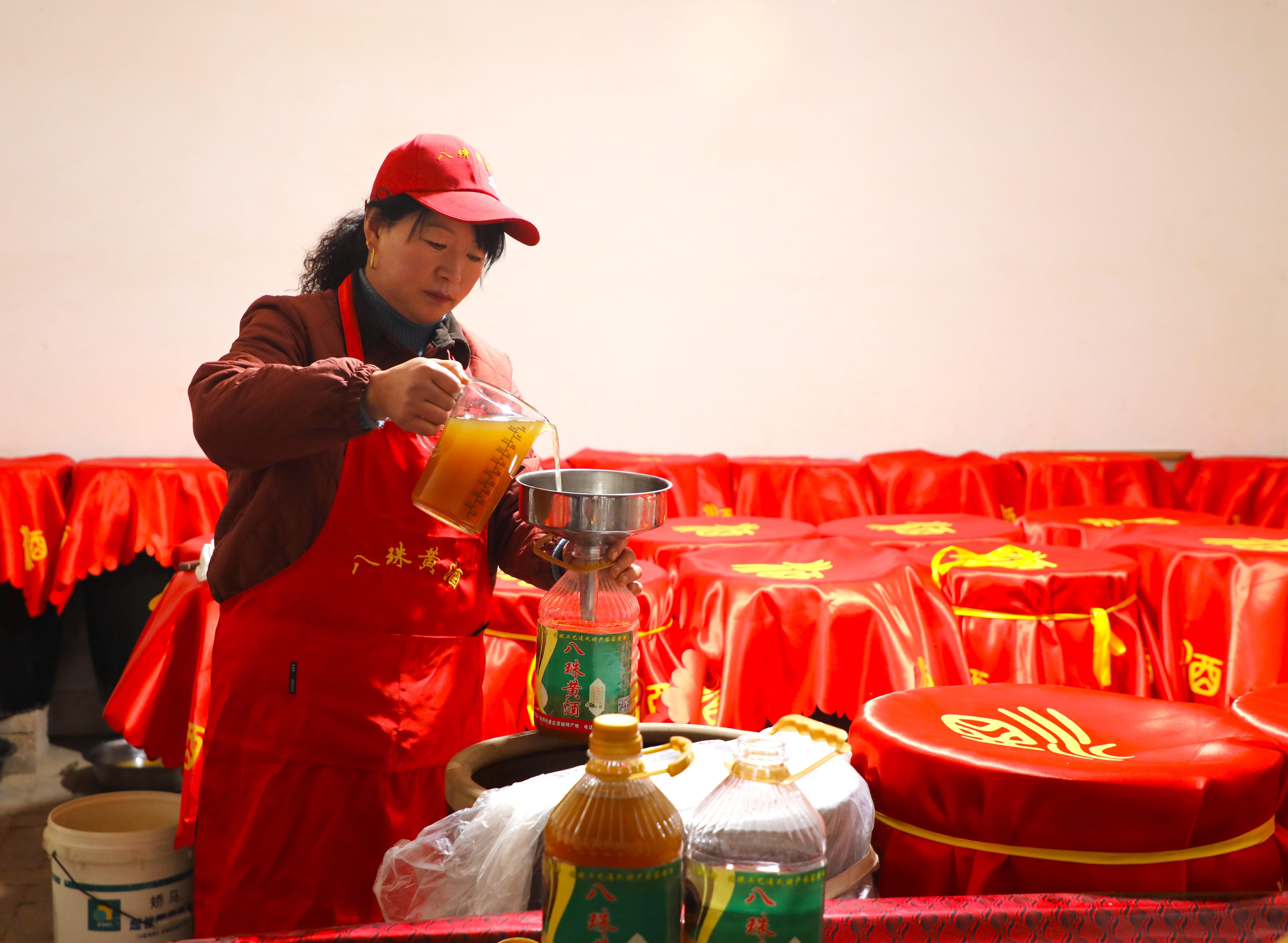 經(jīng)了解,八珠黃酒文化已有數(shù)百年歷史,采用傳統(tǒng)手工釀造,以中藥材柴胡作藥引,以黃黏米、小麥為原料,經(jīng)過蒸料,拌以麥曲和柴胡藥水,進行糖化和發(fā)酵后釀制而成。長久以來,八珠黃酒因色澤深褐,味道醇香、溫胃祛火等特性深受消費者青睞,已成為當(dāng)?shù)厝罕娀閱始奕ⅰ⒎昴赀^節(jié)、親朋聚會時必不可少的待客美酒。