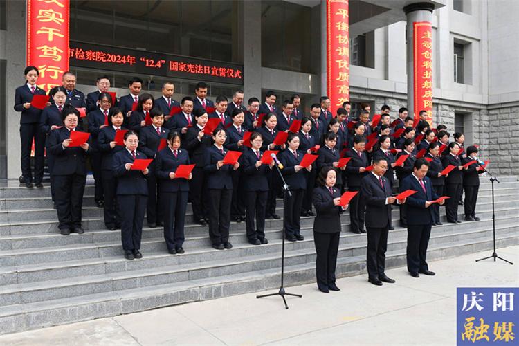 慶陽網(wǎng)訊(慶陽融媒記者 閆偉)12月4日,在第十一個國家憲法日,慶陽市檢察院舉行憲法宣誓儀式。市檢察院黨組書記、檢察長周永祥領誓,全體干警宣誓。儀式上,全體宣誓人員列隊整齊,面向國旗,心承憲法之重,字字鏗鏘宣讀了誓詞,并集體誦讀《中華人民共和國憲法》,表達了對憲法的尊崇及維護憲法權威、捍衛(wèi)憲法尊嚴的決心。