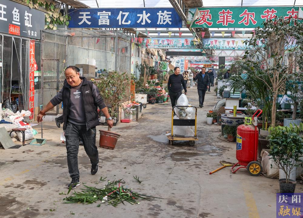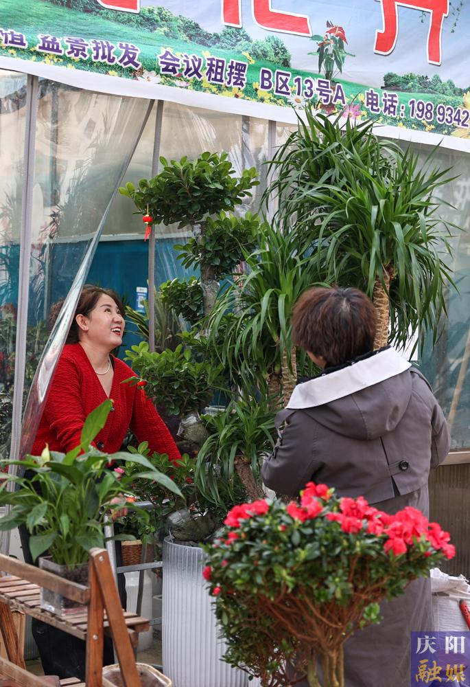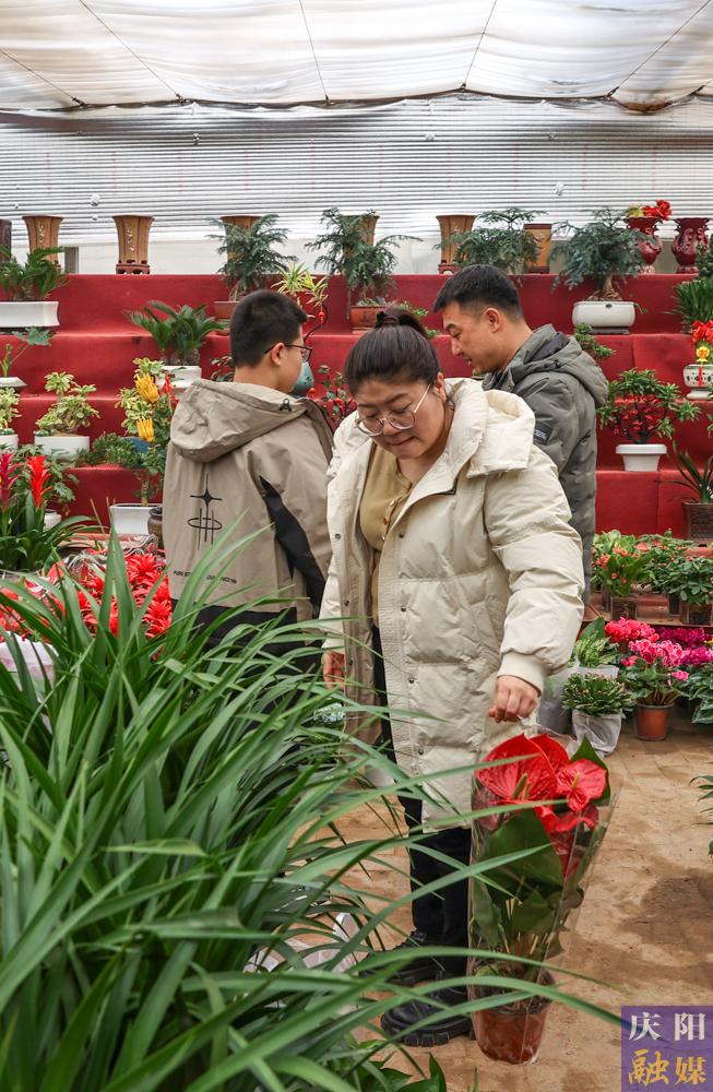 12月15日,市民在西峰區(qū)天富億花卉市場(chǎng)選購(gòu)心儀盆栽。
