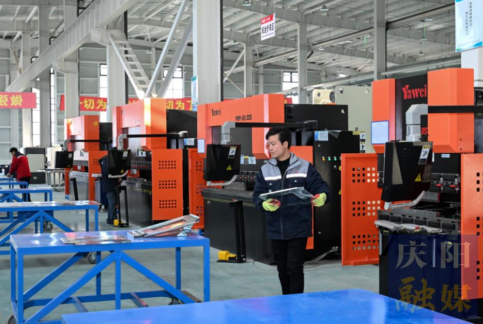 ▲工人在使用設(shè)備沖壓折彎機(jī)箱鈑金配件。慶陽融媒記者 俄少飛 攝