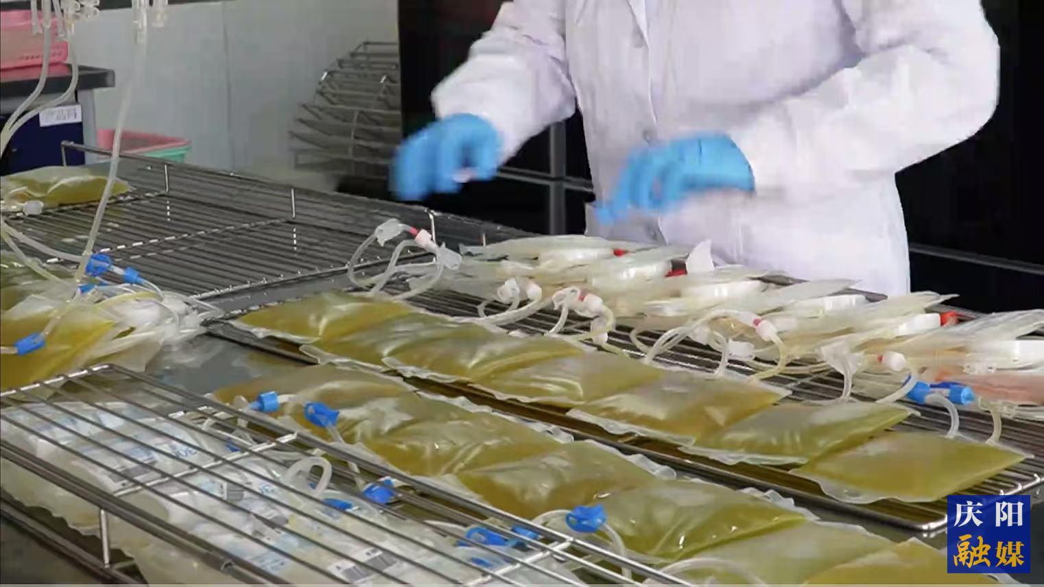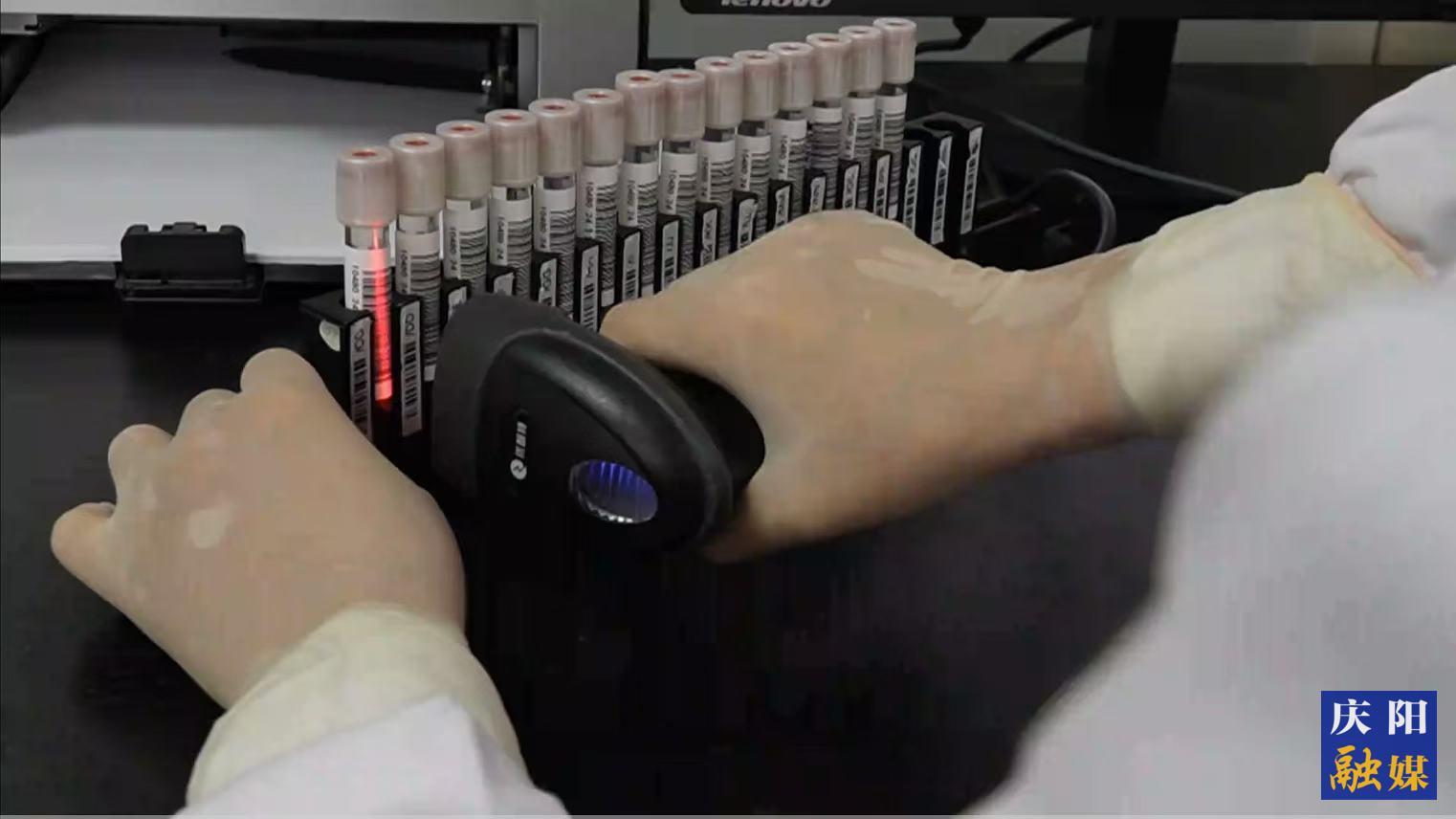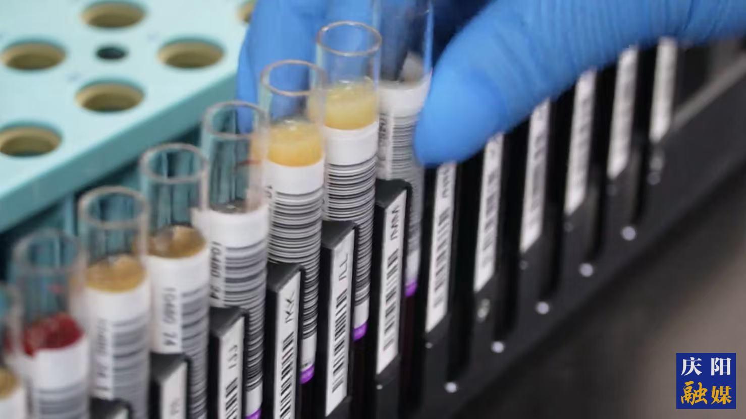 慶陽市中心血站工作人員對血液進行檢測。