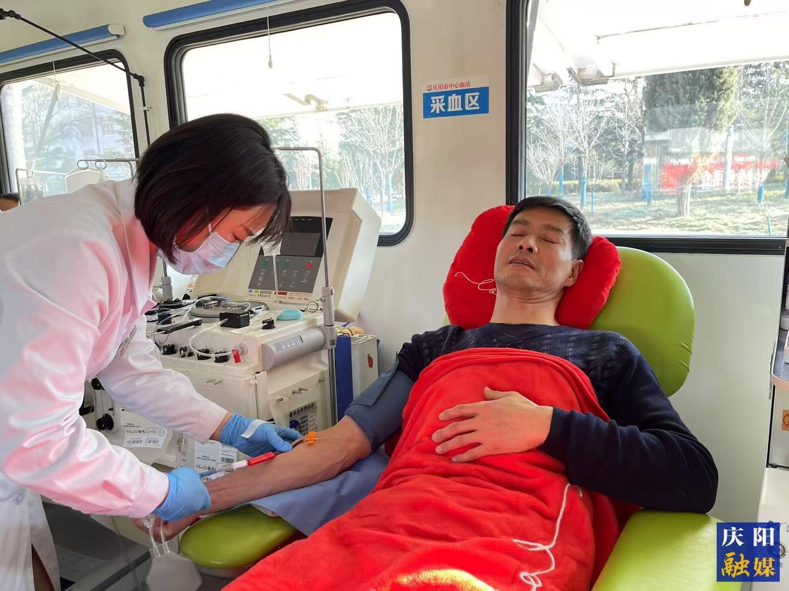 慶陽市中心血站獻血屋內(nèi)的無償獻血者。