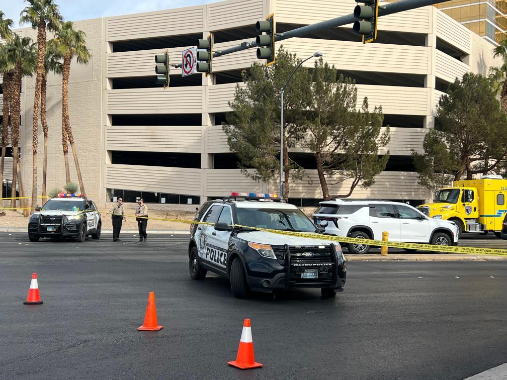 2025年1月1日,在美國(guó)內(nèi)華達(dá)州拉斯維加斯,警方封鎖發(fā)生電動(dòng)汽車(chē)爆炸事件的特朗普酒店門(mén)前區(qū)域。新華社記者 譚晶晶 攝