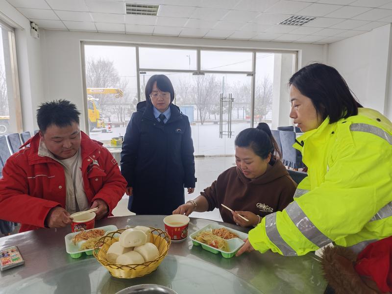 為“民”服務(wù)暖人心。大雪無(wú)情,人間有愛。降雪導(dǎo)致部分司乘出行受阻,慶城收費(fèi)所安排專人對(duì)收費(fèi)廣場(chǎng)因交通管制滯留人員做好解釋和情緒安撫工作,并化身“紅色天使”做好便民服務(wù),一杯熱水,一份便飯,用真心服務(wù)司乘,用真情傳遞溫暖,用真愛彰顯新時(shí)代高速人的奉獻(xiàn)精神。
