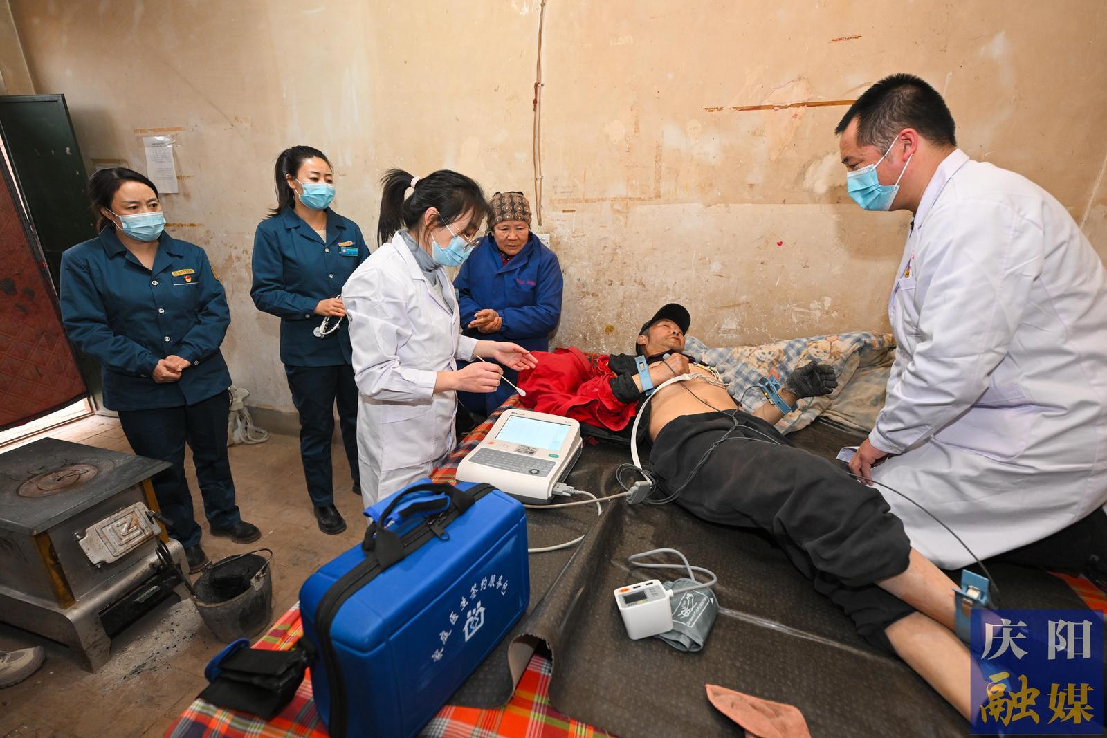 家庭醫(yī)生簽約服務(wù)團隊為患者做心電圖檢查。